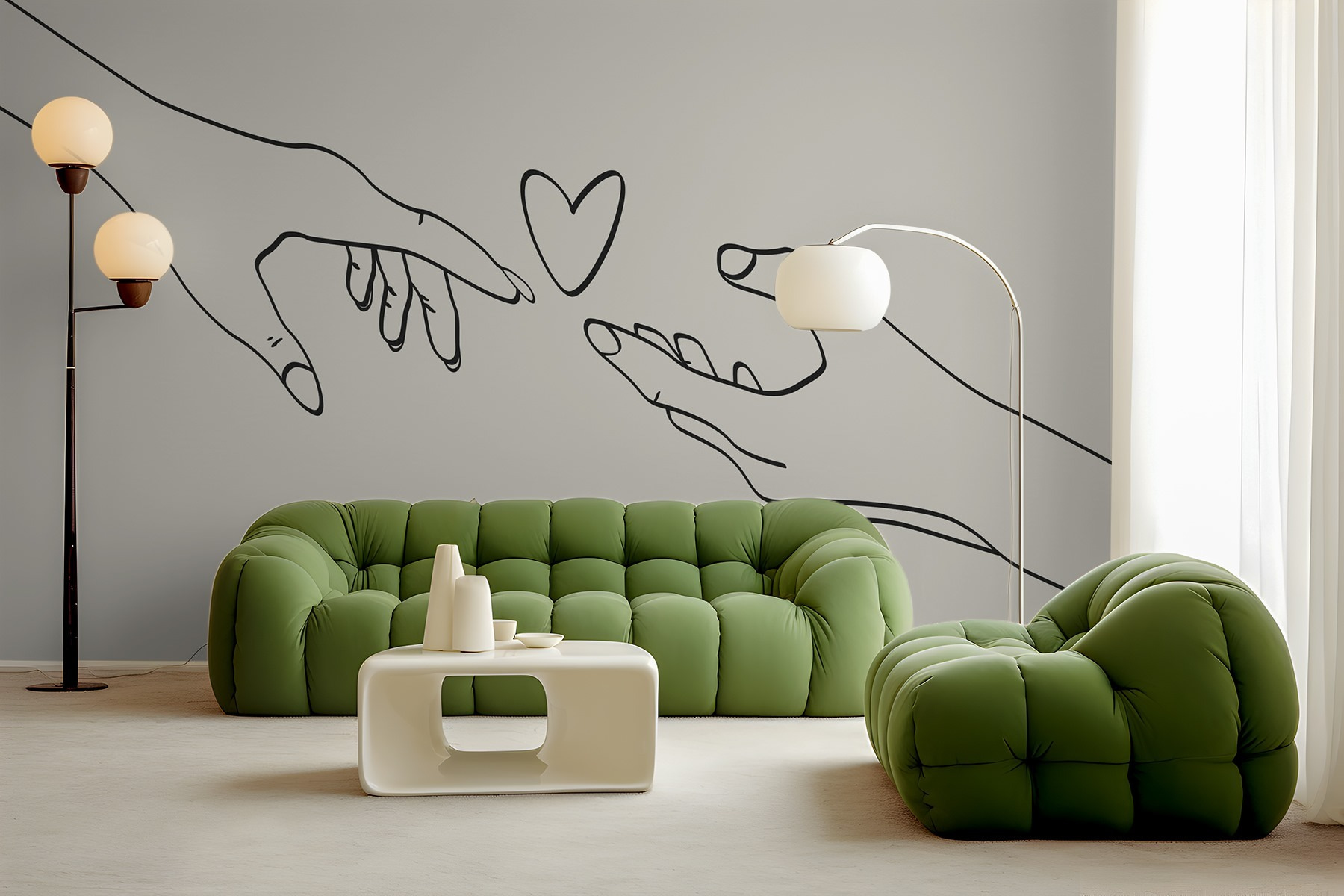 Brighten up your space with this charming mural of two hands reaching for a heart. It’s like a visual hug—perfect for those cozy corners where you sip your morning coffee and ponder the mysteries of life, like why socks disappear in the wash. The minimalistic design adds a touch of warmth without overwhelming the vibe. Picture it in a living room or a peaceful reading nook; it’ll spark conversations and maybe even some lighthearted debates about love and connection. It’s not just decor; it’s a reminder that a little love goes a long way.