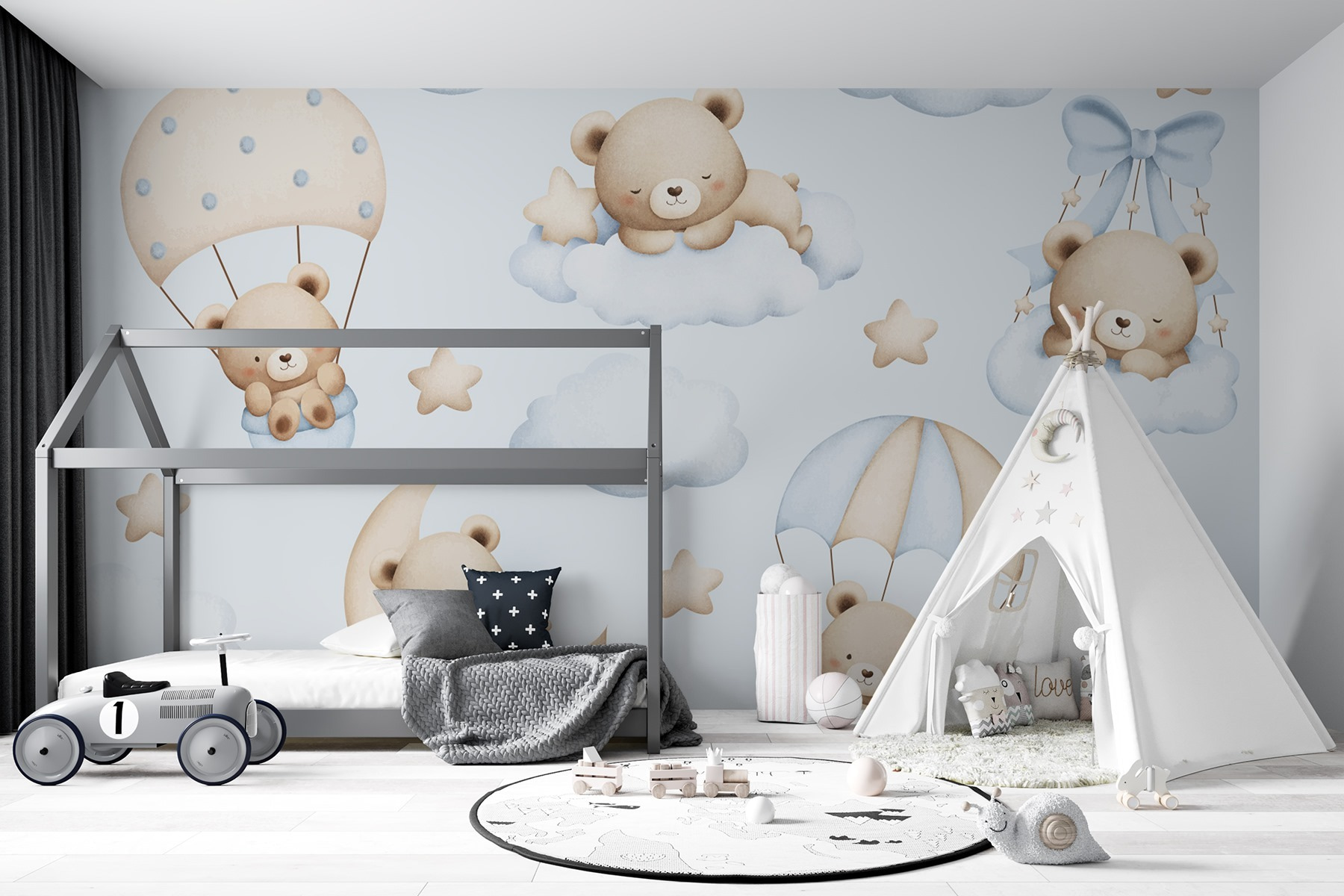 Transform any space into a cozy wonderland with this “Wall Murals Seamless Pattern of Teddy Bears.” Imagine a delightful scene where cute bears float on clouds, hang out with stars, and snuggle under a moonlit sky. It’s like a whimsical dream for kids and the young at heart. Perfect for nurseries or playrooms, this mural adds a touch of magic that sparks imagination. Who wouldn’t smile seeing these adorable bears? Just picture a child pointing at them, eyes wide with joy. It’s more than decor; it’s an invitation to dream big and play hard!