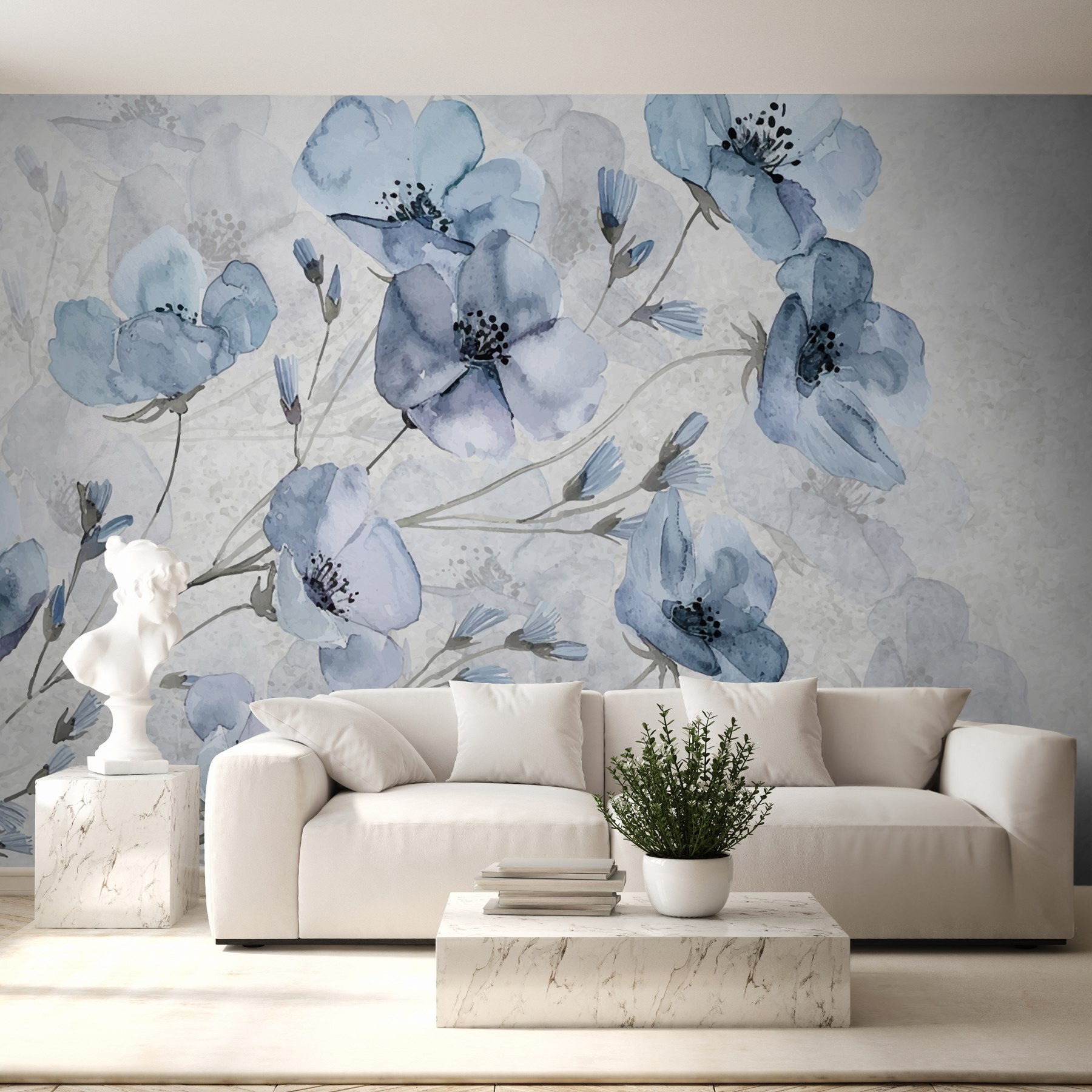 Transform your space with the “Delicate Blooms in Soft Hues” mural. Imagine walking into a room and immediately feeling like you’ve stepped into a serene garden. These soft, watercolor flowers in gentle blues are perfect for adding a touch of elegance without screaming for attention. It’s like a breath of fresh air—inviting and calming.
