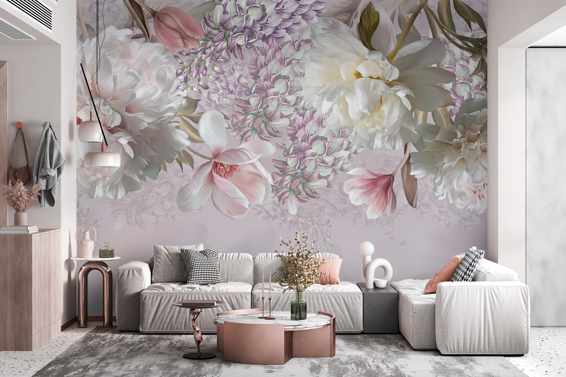 Wall murals Delicate blossoms in soft hues (SKU: w02406)