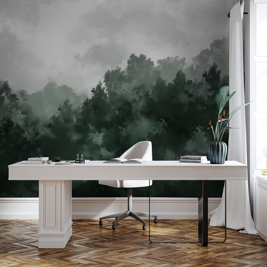 Transform any room into a serene escape with this “Foggy Forest with Trees” mural. It’s like bringing a slice of nature right indoors, minus the pesky bugs or muddy shoes. Imagine sipping coffee while gazing at those misty trees—there’s something calming about that, right? The soft greens and grays create an atmosphere that’s both cozy and refreshing. It’s perfect for a living room or a bedroom where relaxation is key. Plus, it’ll definitely get folks talking—like, “Is that a real forest?” Nope, just a stunning mural weaving the magic of the outdoors into your home. So why not let a little forest therapy brighten up those walls?