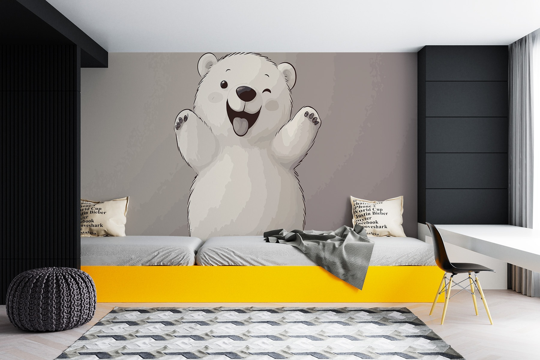 Transform your space with this delightful “Wall Murals Cartoon of a Polar Bear.” Just imagine—walking into a room and being greeted by this cheerful, chubby little guy, arms wide open as if to say, “Welcome to your happy place!” Perfect for a child’s room or any cozy nook, this mural brings a splash of whimsy and warmth. The soft, muted tones create a calming vibe, making it easy to relax. Plus, who can resist that adorable wink? It’s like having a furry friend keeping watch. Just hang it up and let the smiles roll in—great for sparking joy and maybe even a chuckle or two. Perfect for everyone looking to add a touch of fun!