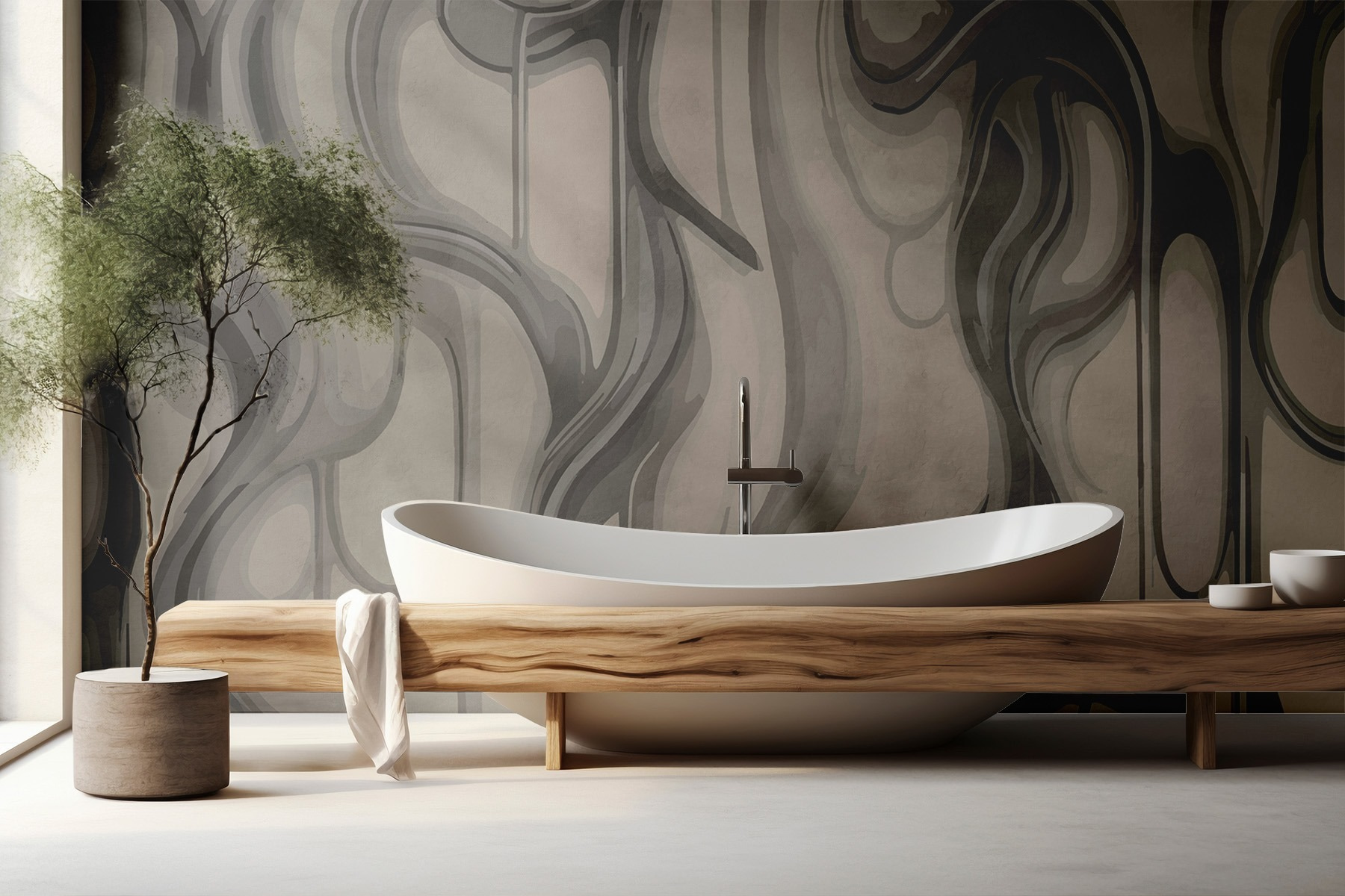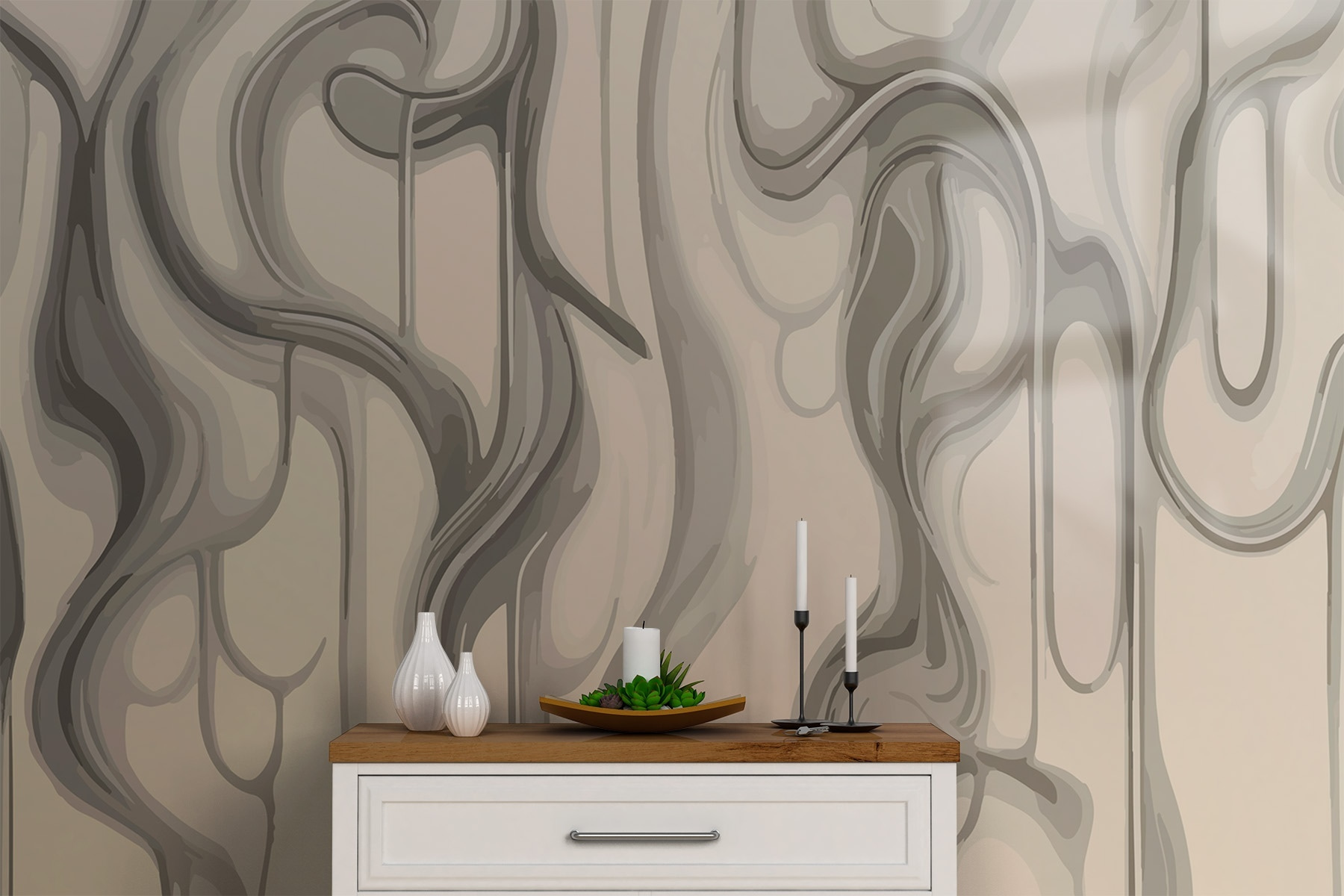 Transform your space with this wall mural that melds abstract forms in soothing neutral tones. Imagine stepping into a room where the walls breathe art; the gentle curves and flowing lines inspire a sense of calm and wonder. It’s like having a conversation with your walls that whispers, “Relax, you’re home.” Perfect for a cozy reading nook or a stylish living area, it adds a splash of creativity without being too loud. Guests might find themselves captivated, maybe even a bit curious, staring thoughtfully at these graceful designs. Who knows, it might just spark a few interesting conversations—or at least a “where did you get that?”