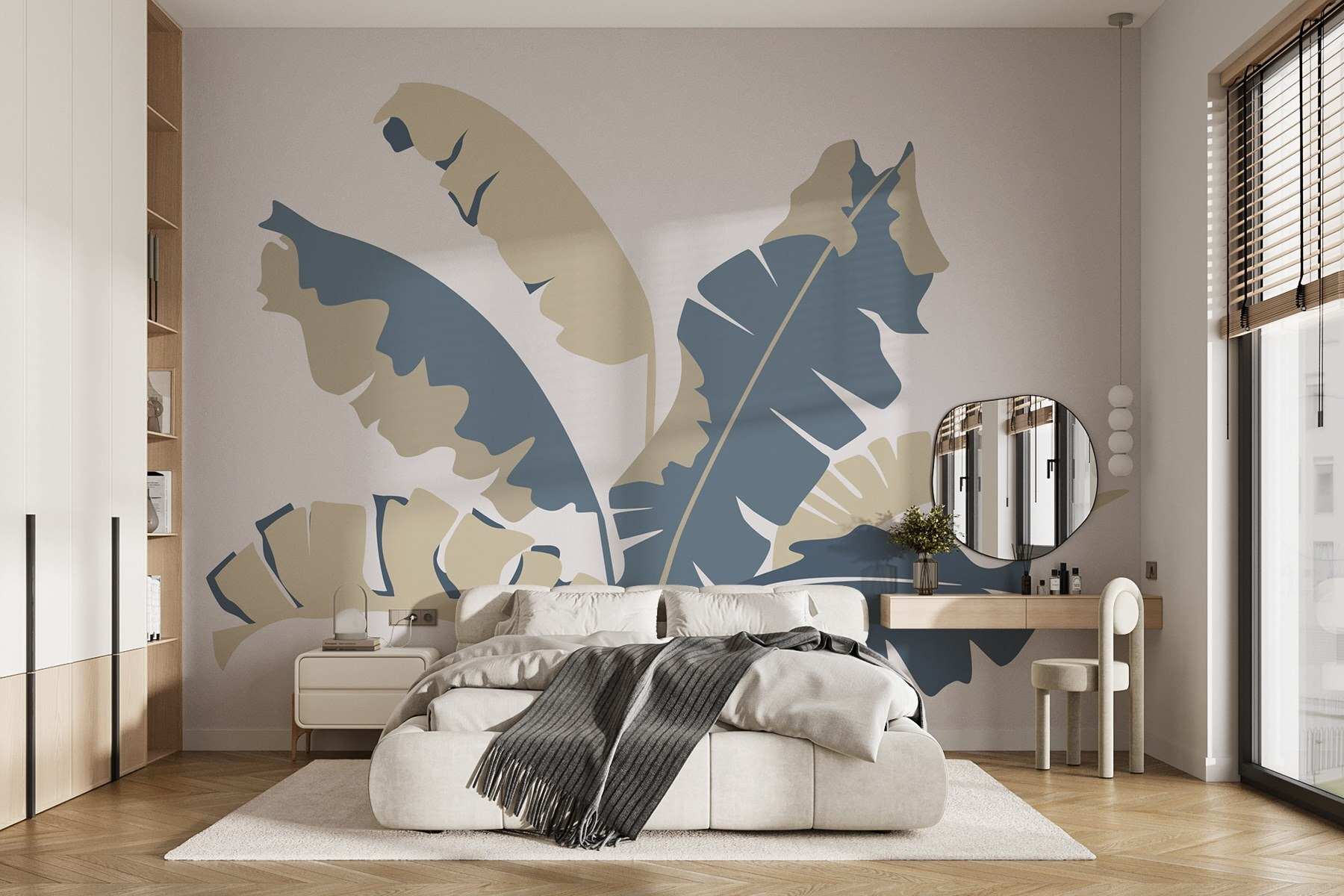 Transform your space with this stunning wall mural, featuring a playful mix of leaves that gives a tropical vibe without needing a passport! Seriously, it’s like bringing a slice of paradise right into your living room. Imagine waking up every morning to this lush beauty—it’s almost like you’re in a sun-drenched garden. The calm color palette blends seamlessly with most decors, creating a soothing backdrop for your cozy meetings or binge-watching sessions. Friends might even mistakenly think you’ve got a green thumb! A perfect dash of nature, minus the watering can.