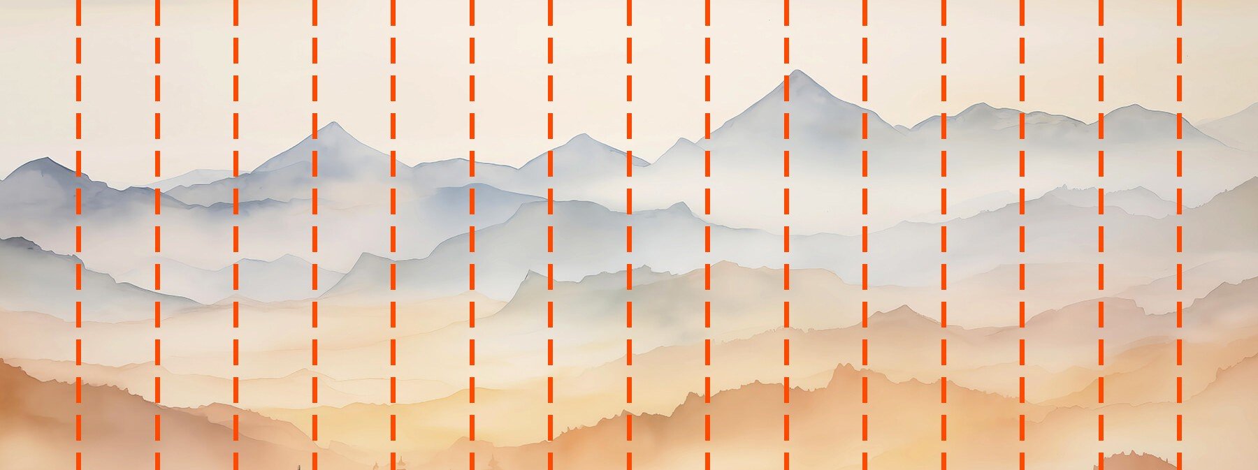 Your wallpaper will be prepared according to the dimensions you provided during the ordering process. The canvas will be divided into convenient sections, each up to 50 cm in width.