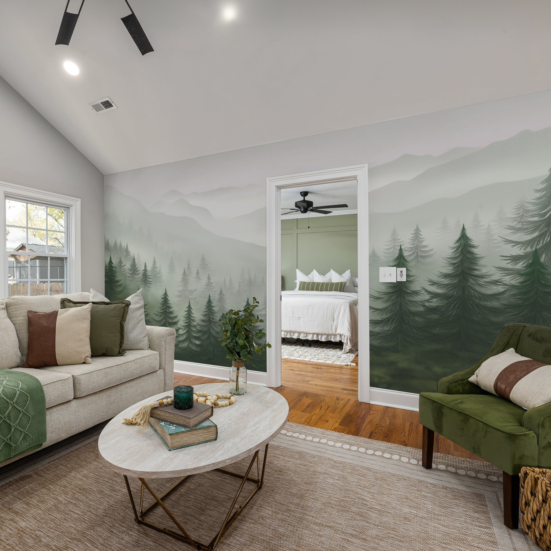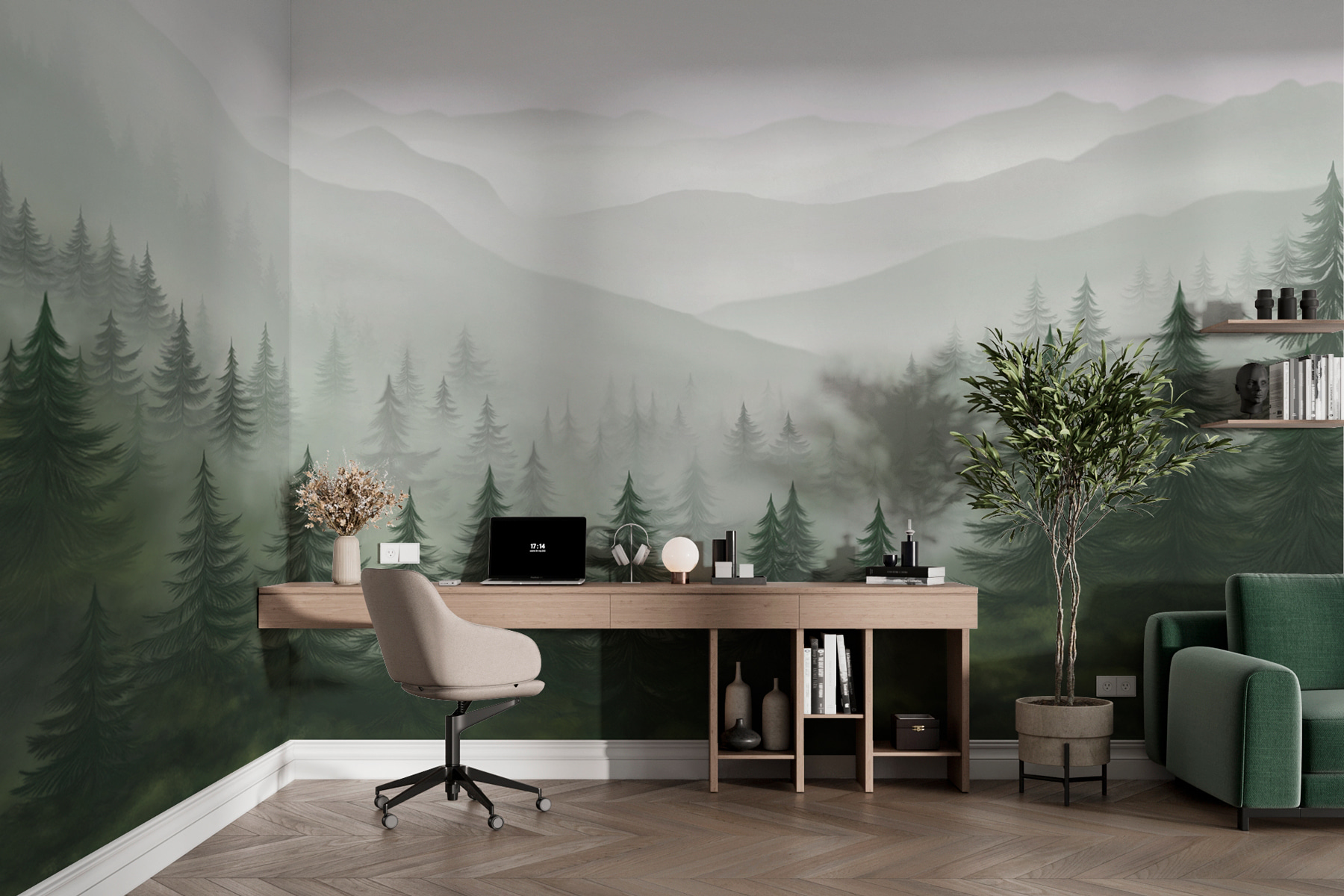 Imagine stepping into a misty realm every day, where trees whisper secrets and mountains loom like dreamy giants. This “Foggy Landscape with Trees and Mountains” mural doesn’t just decorate your wall; it transforms your space into a soothing escape. Picture this: sipping coffee while gazing at the gentle haze that invites serenity. It’s perfect for those cozy evenings when you just want to unwind. Plus, it’s a fantastic conversation starter—friends might even think you’ve got a cabin in the woods! Bring a touch of nature indoors and let every glance remind you of peaceful trails and serene vibes. Who doesn’t need a little piece of nature’s magic at home?