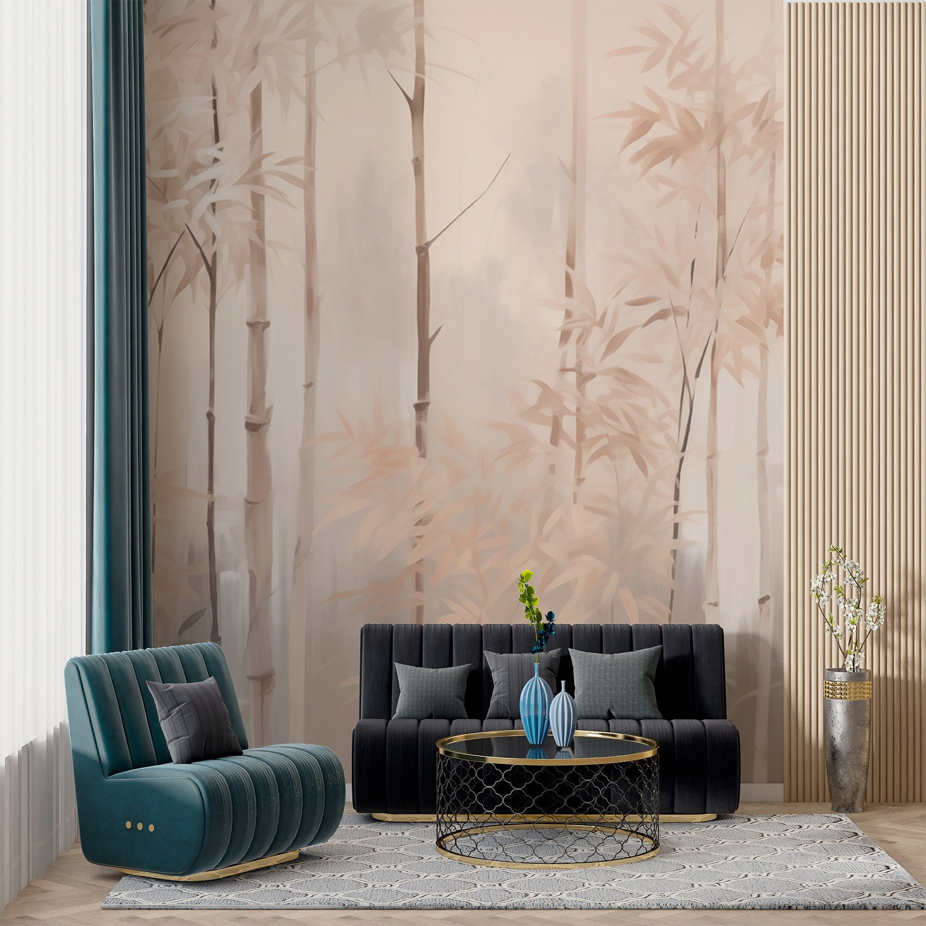 Transform any wall into a serene escape with this lovely mural featuring trees shrouded in delicate fog. It’s like stepping into a peaceful forest, minus the bugs and muddy shoes. The gentle blend of soft colors creates a calming atmosphere—perfect for unwinding after a long day. Imagine sipping your coffee while gazing at this dreamy scene. It’s not just decor; it’s a little slice of nature right at home. Plus, it’s sure to spark some lovely conversations or moments of quiet reflection. Nature lovers and cozy vibes alike will adore this mural!