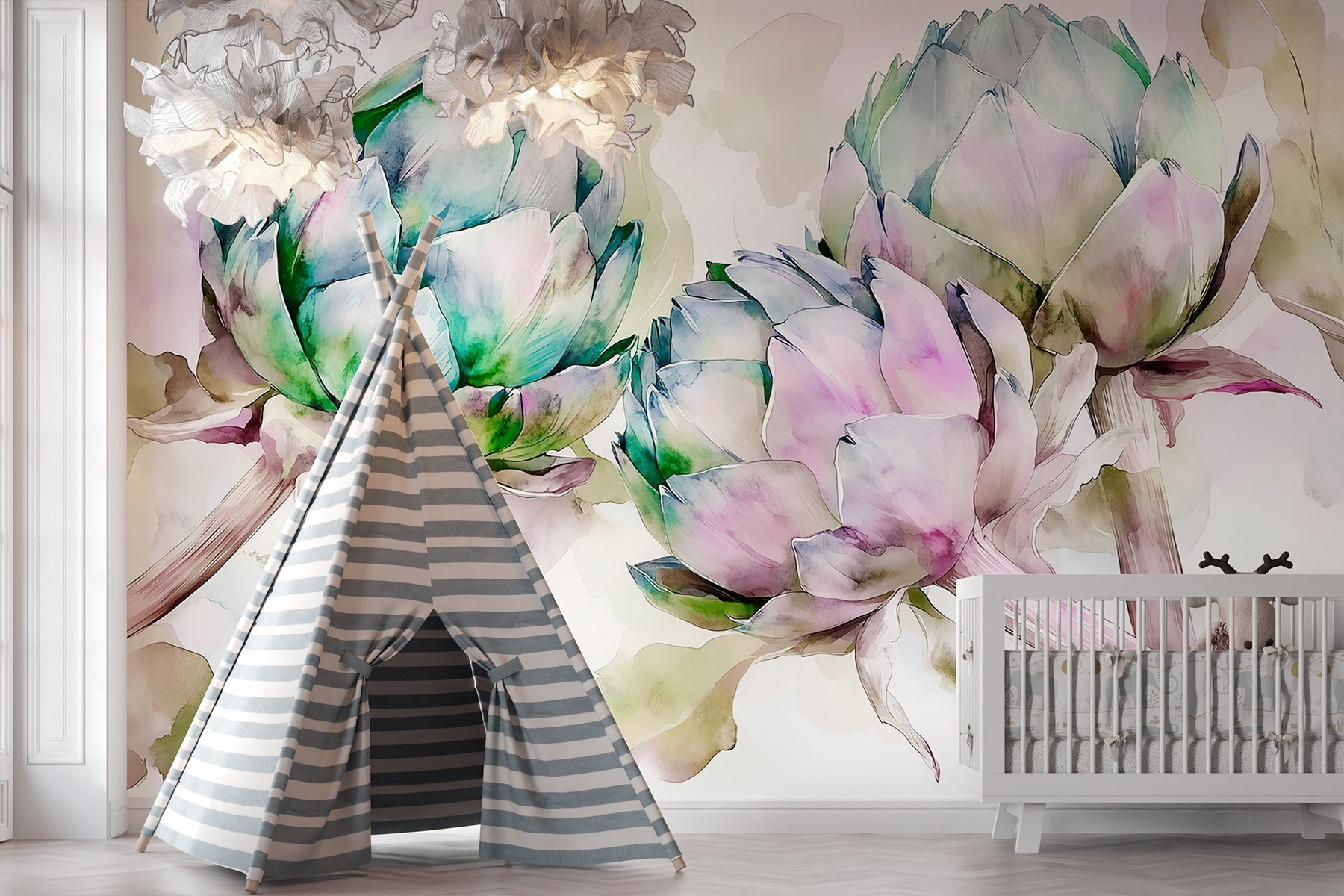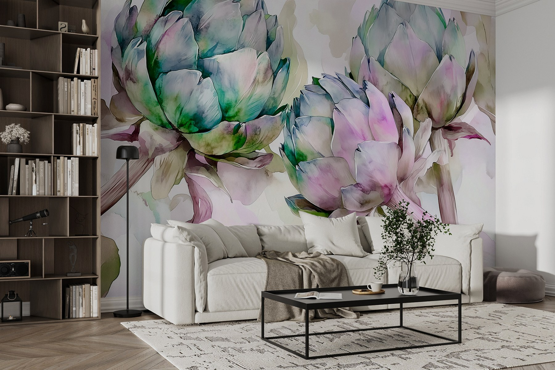Bring a bit of nature indoors with these stunning artichoke wall murals. Imagine walking into a room bathed in soft greens and pastel purples, transforming your space into a tranquil oasis. These floral beauties add a touch of elegance that’s surprisingly refreshing—like a gentle breeze on a warm day. Perfect for that one wall always begging for some love, they spark conversation and maybe even a chuckle about how artichokes can be artful too! Whether in a cozy kitchen or a chic living room, they just might inspire dreams of garden picnics or creative culinary adventures. Go on, let your walls bloom with charm!