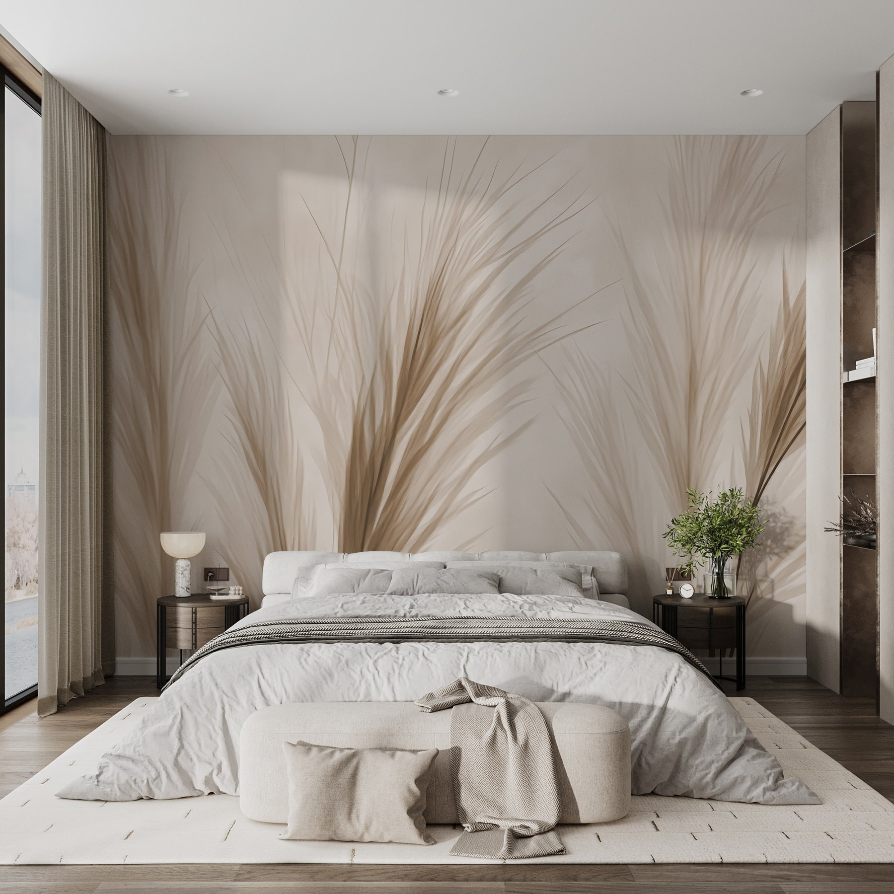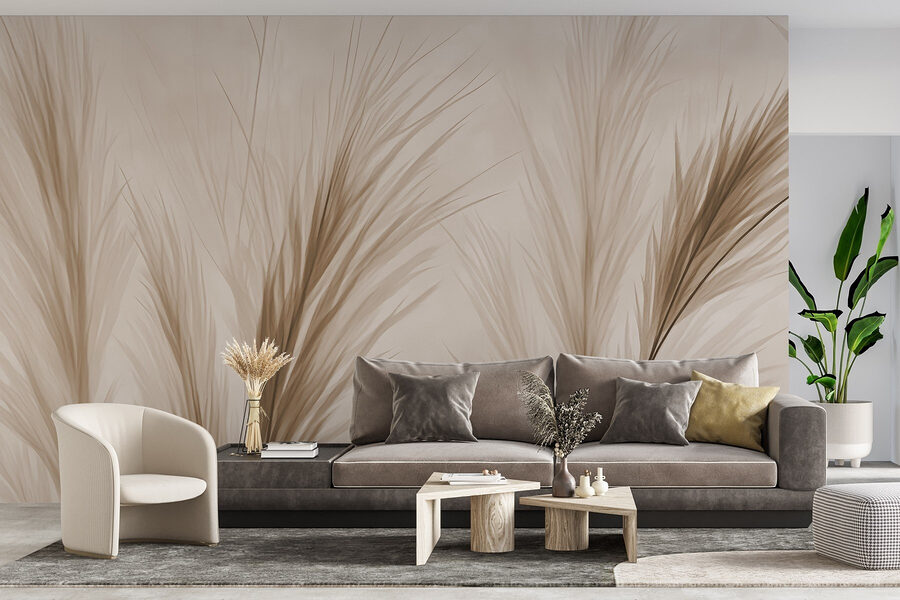 Transform your space with this stunning wall mural featuring soft, elegant grass silhouettes in warm beige tones. Picture it—the gentle sway of grass at sunset, bringing a touch of nature indoors. This design adds a calming vibe, perfect for creating that cozy nook where you can sip tea and unwind. Imagine visiting a friend’s place, and this mural just whispers tranquility, inviting you to stay a while longer. Plus, it works wonders in brightening up any dull wall—no watering required! So, let your walls breathe with a touch of effortless elegance.