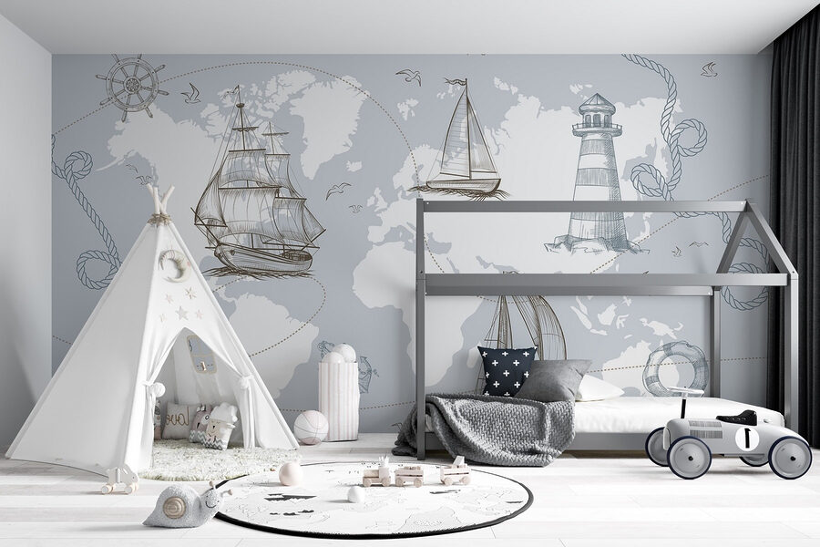Transform your space into a voyage of discovery with this wall mural featuring a world map and a charming parade of ships. Picture it: waking up in a room that feels like the high seas—without the sea sickness. The muted colors and delicate illustrations create a sense of calm, making it perfect for daydreaming about next adventures. Plus, it could be a great conversation starter for when friends pop by. Who wouldn’t want to chat about where they’d sail off to first? And with this mural, every corner of the room invites a little wanderlust.