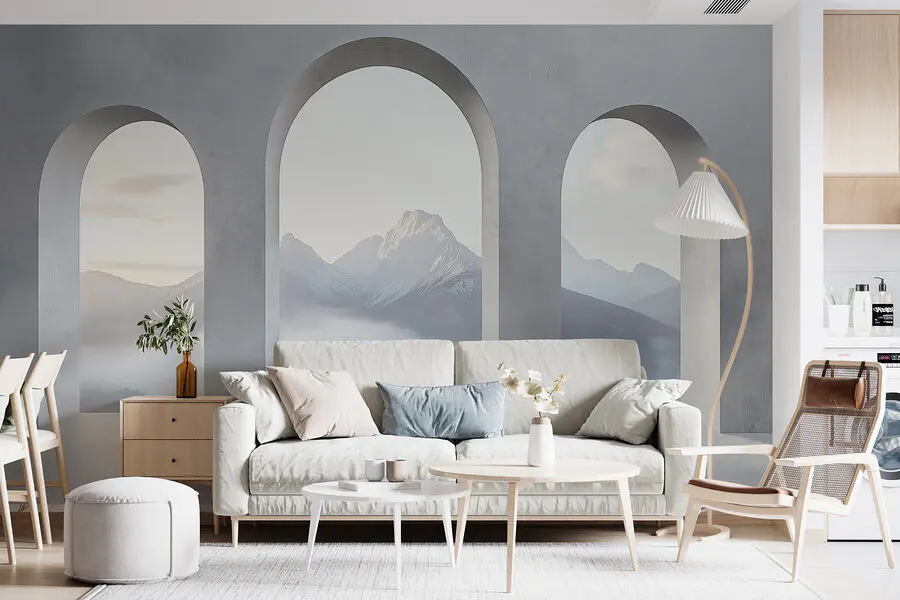 Transform your space into a serene escape with this stunning wall mural featuring arched windows overlooking majestic mountains. Imagine waking up each morning, greeted by a soft, ethereal landscape that whispers adventure just outside your walls. This isn’t just a mural; it’s like inviting nature inside. The gentle hues and minimalist design bring a calming vibe, perfect for a cozy reading nook or a peaceful bedroom retreat. Plus, who wouldn’t want their walls to feel like a breath of fresh air? It’s the little things that make home, well, home.