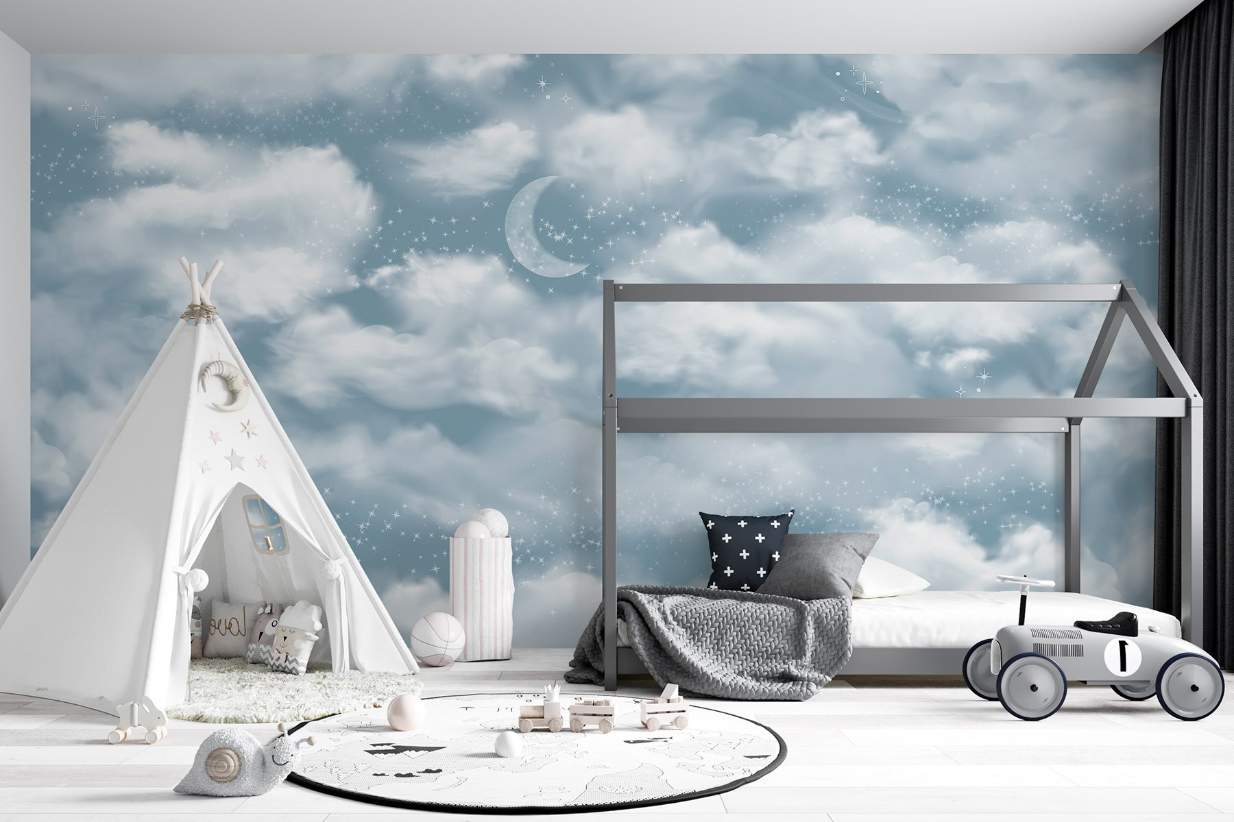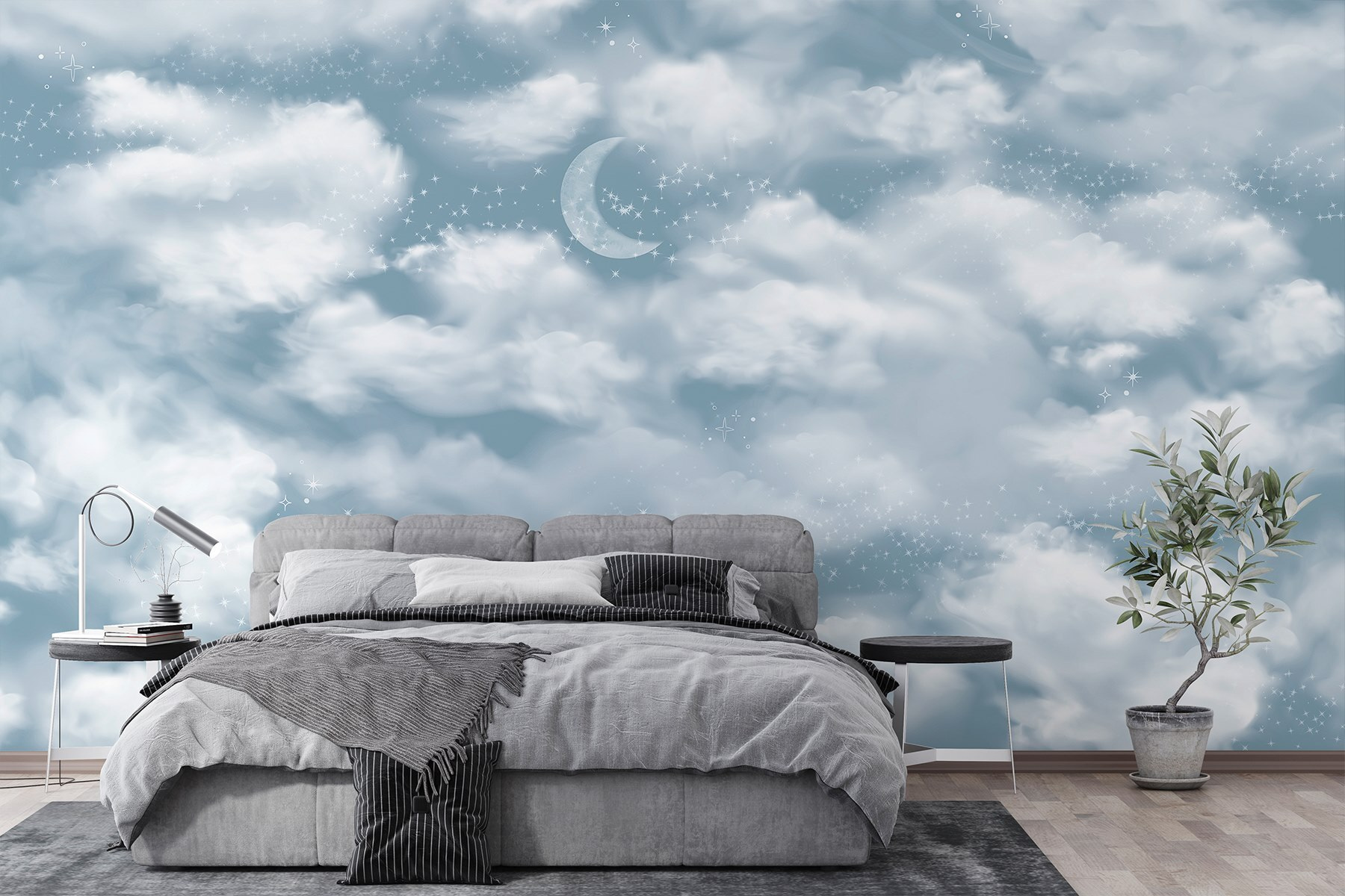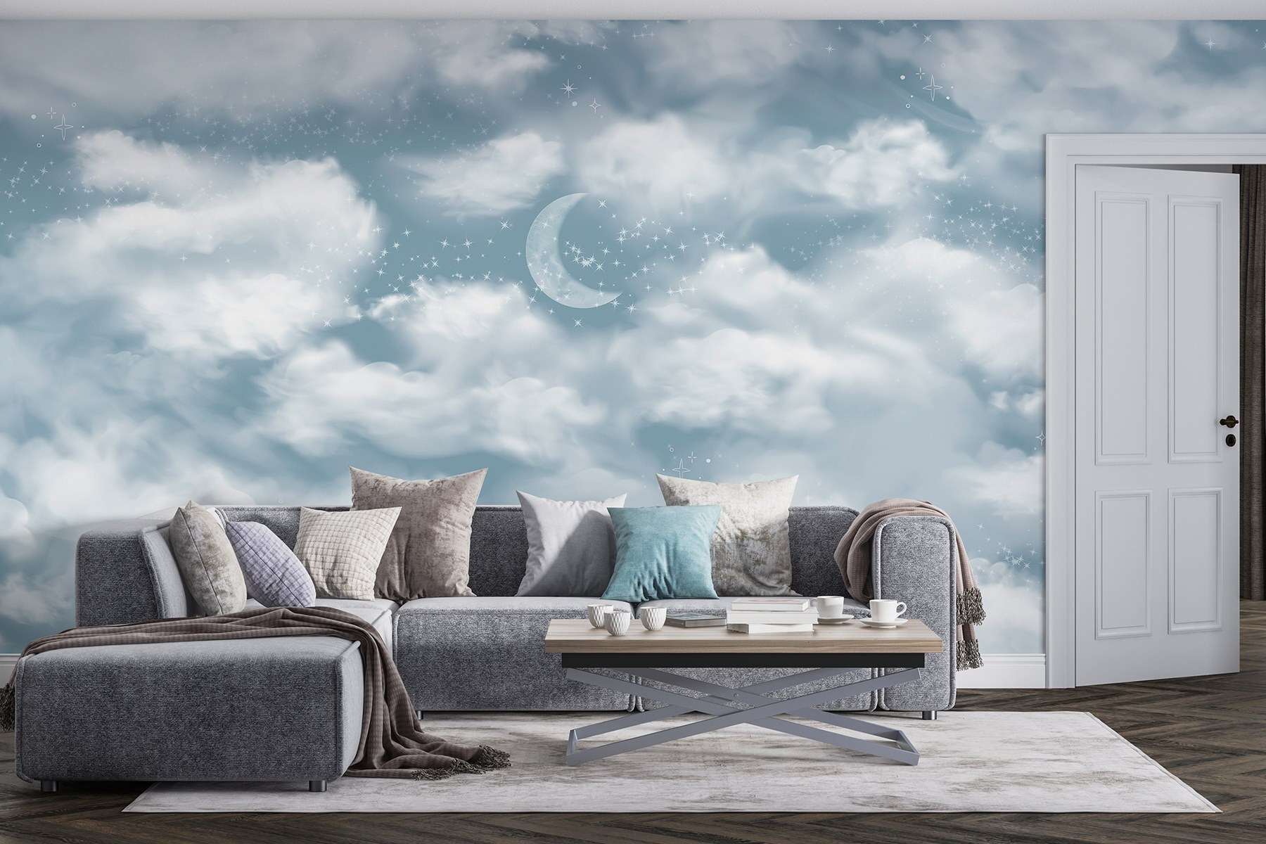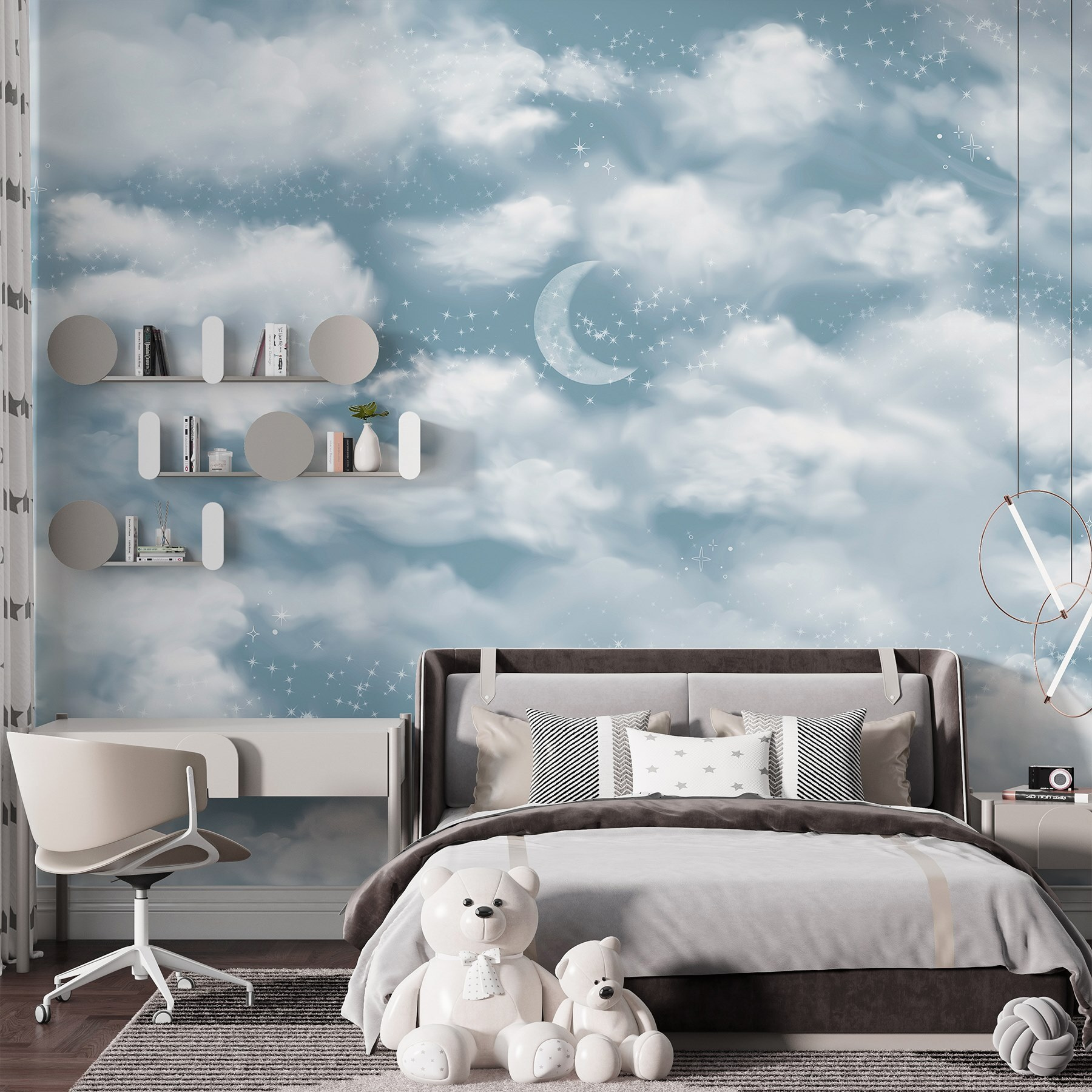 Transform a dull space into a dreamy retreat with the “Wall Murals Moon in the Sky.” Just picture lounging in a room where soft clouds float lazily across the wall, with a serene crescent moon keeping watch. This mural isn’t just a decoration; it’s an invitation to daydream and drift off to peaceful thoughts. Imagine kicking back on a rainy afternoon, sipping tea, and feeling like you’re wrapped in a cozy cloud. Perfect for bedrooms, nurseries, or anywhere that needs a sprinkle of magic. Say goodbye to boring walls and hello to a little slice of heaven!