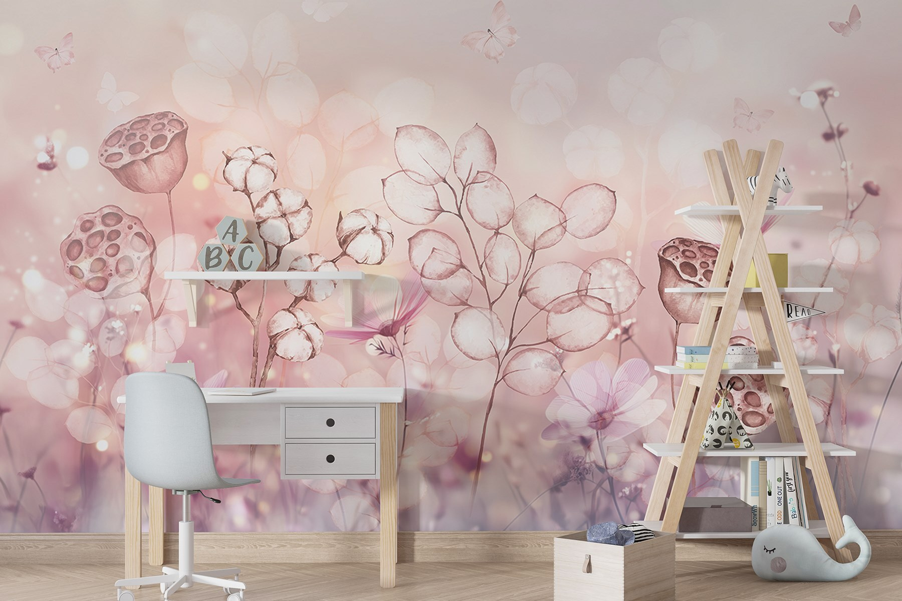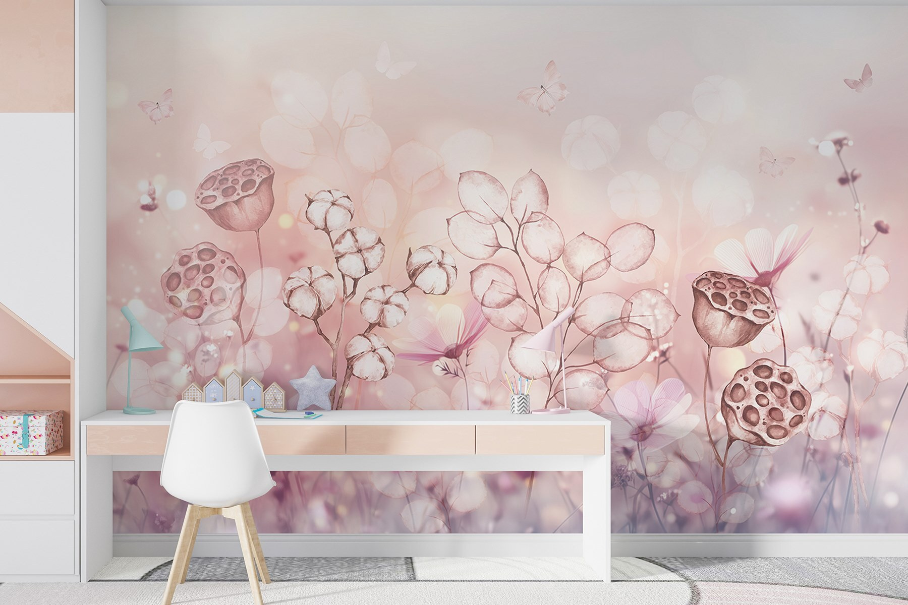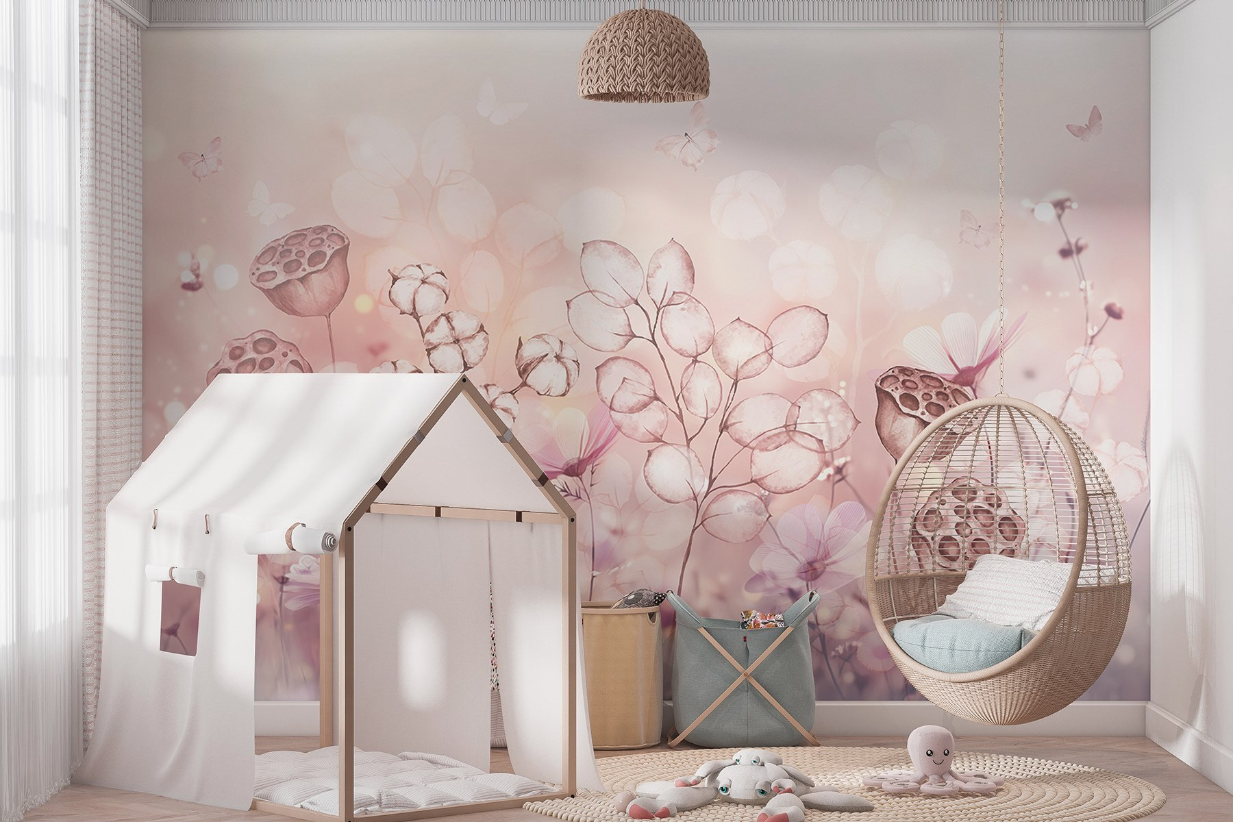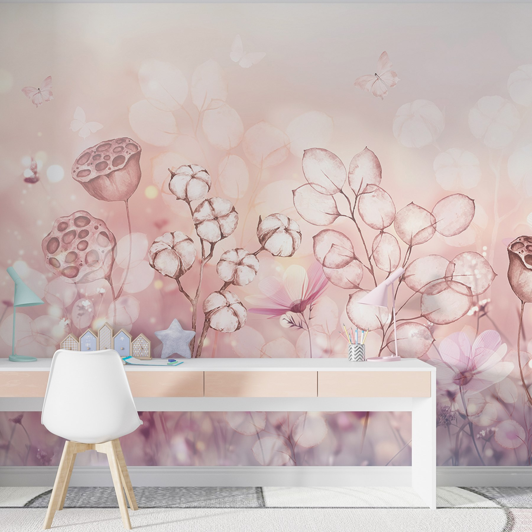 Imagine walking into a room that feels like a gentle spring morning. The “Delicate blooms in soft pastel hues” mural wraps you in a soft embrace, with flowers popping in blush pinks and soothing lavenders. It’s like nature’s own watercolor painting, bringing a sprinkle of whimsy and a dash of elegance to your space. Picture a cozy reading nook, a cup of tea in hand, surrounded by these calm blooms. Suddenly, it’s not just a room anymore; it’s a tranquil escape! Plus, can we talk about how those little butterflies just add a hint of magic? It’s a lovely way to feel refreshed without all the sneezing from real pollen!