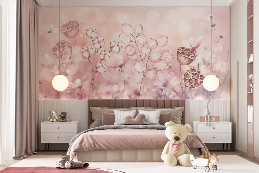 Imagine walking into a room that feels like a gentle spring morning. The “Delicate blooms in soft pastel hues” mural wraps you in a soft embrace, with flowers popping in blush pinks and soothing lavenders. It’s like nature’s own watercolor painting, bringing a sprinkle of whimsy and a dash of elegance to your space. Picture a cozy reading nook, a cup of tea in hand, surrounded by these calm blooms. Suddenly, it’s not just a room anymore; it’s a tranquil escape! Plus, can we talk about how those little butterflies just add a hint of magic? It’s a lovely way to feel refreshed without all the sneezing from real pollen!