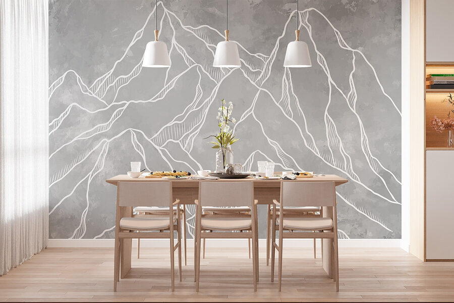 Transform your space with this striking wall mural of a mountain range. It’s like having a piece of nature right inside your home—minus the hiking boots and potential bear encounters! The clean, abstract lines create a sense of calm, perfect for a living room or cozy corner where you unwind after a long day. Imagine curling up with a fuzzy blanket and a warm drink, all while gazing at these stunning peaks. It’s a conversation starter, too—everyone will want to know where you found such a unique touch. Go on, let those mountains inspire your next adventure!
