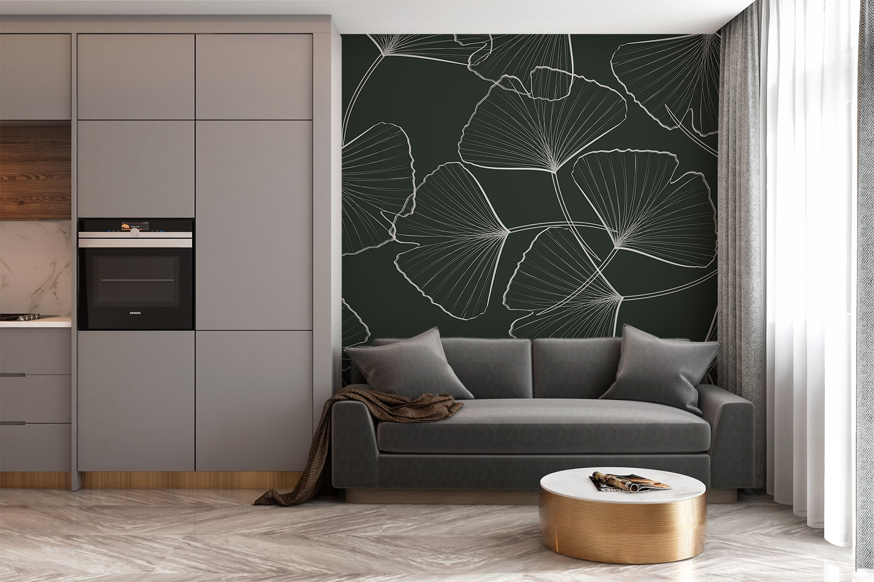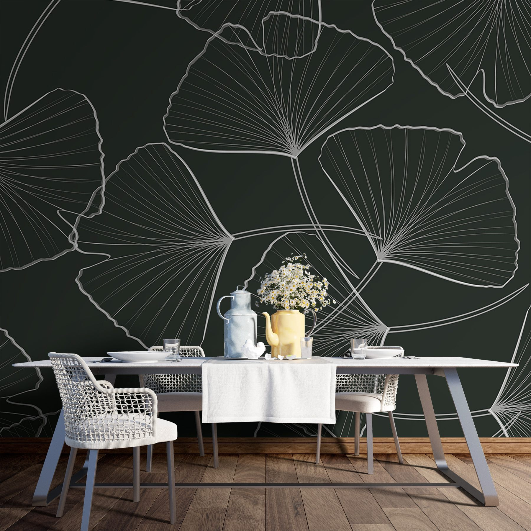 Imagine stepping into a room and feeling like you’re in a serene forest, without needing to leave your home. This wall mural, featuring delicate leaves dancing against a bold black background, brings nature’s calm right to your space. It’s like having a secret garden behind your couch!