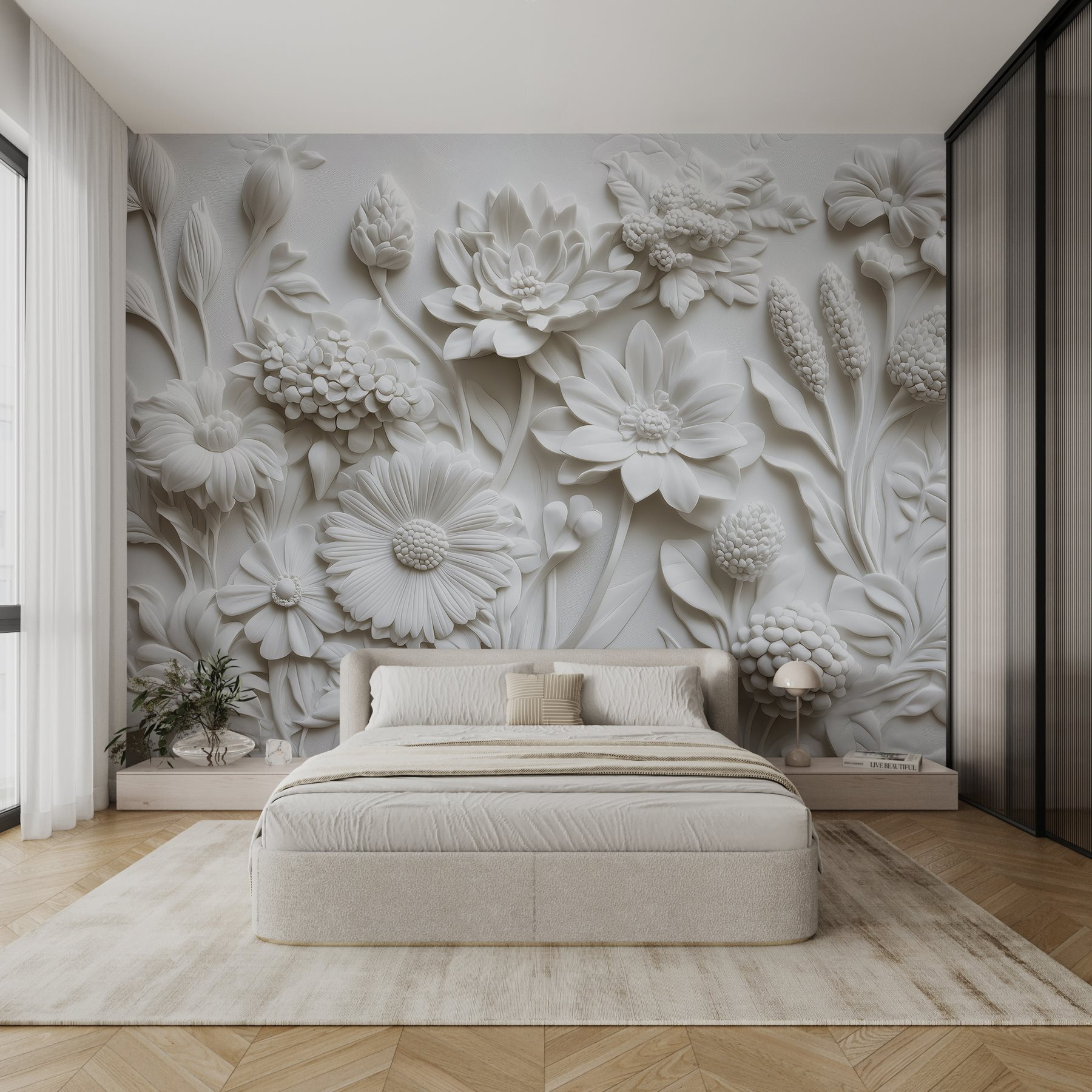 Transform your space with this stunning wall mural featuring a delicate white flower sculpture. Imagine stepping into a room where the beauty of nature wraps around you—seriously, it’s like having a garden that never wilts. The intricate details of each flower invite you to get lost in their shapes and forms. Perfect for brightening up a cozy corner or adding a serene vibe to a larger area, it brings a timeless elegance. Plus, it’s great for those days when stepping outside just isn’t an option. This mural doesn’t just decorate; it elevates every moment in your home with a calm, beautiful embrace. Who wouldn’t want that?