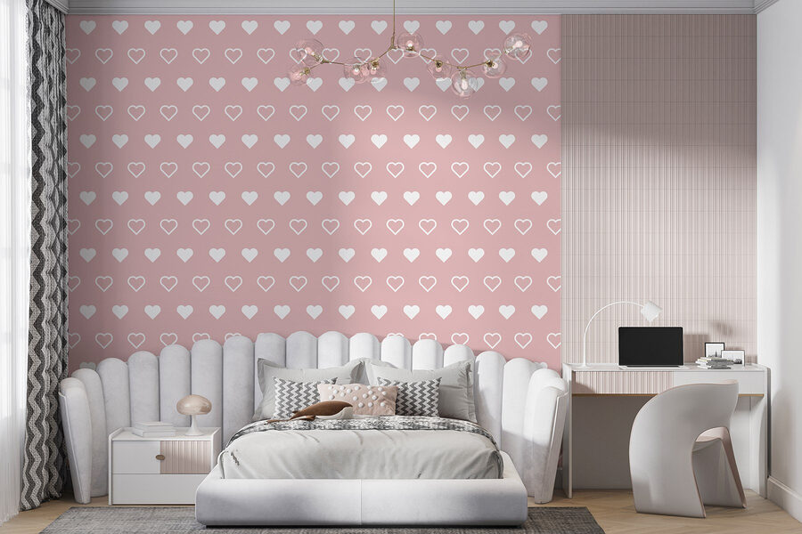 Add a playful pop to any room with this charming wall mural featuring tiny white hearts on a soft pink background. It’s like having a sweet confetti party on your walls, minus the mess. Imagine cozying up in a space that feels simultaneously playful and intimate—perfect for a nursery or even a trendy café. Each heart seems to whisper warmth and affection, inviting smiles from anyone who walks in. Can’t you just picture sipping coffee in a cozy nook surrounded by these delightful little motifs? They bring a cheerful vibe that’s hard to resist.