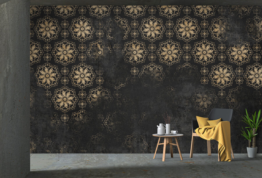 Transform any space with this stunning wall mural, where intricate patterns dance on a dark background. Can you imagine how it would look in a cozy reading nook or that wall you’ve been ignoring for ages? The bold design pulls you in, making your room feel like a little art gallery. Each pattern seems to tell its own story, creating a vibe that’s both modern and timeless. Perfect for those who love to blend style and character, this mural could turn an ordinary wall into a conversation starter. A hint of drama, a splash of intrigue—just what every home deserves!