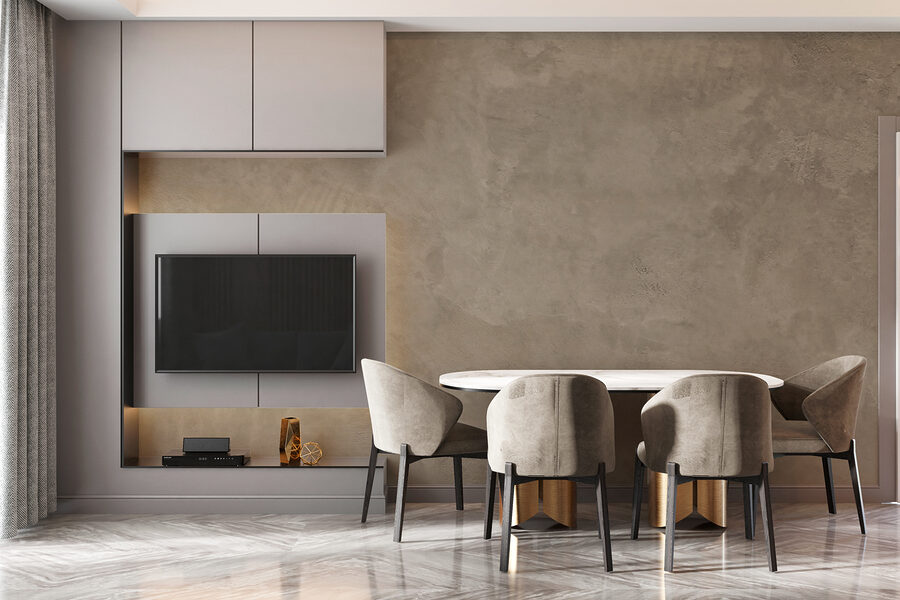 The vinyl coating is a thin layer of PVC applied to a non-woven base. The presence of vinyl makes the wallpaper resistant to damage, allows for easy cleaning with a damp sponge, and gives the surface an embossed texture, resembling linen fabric.