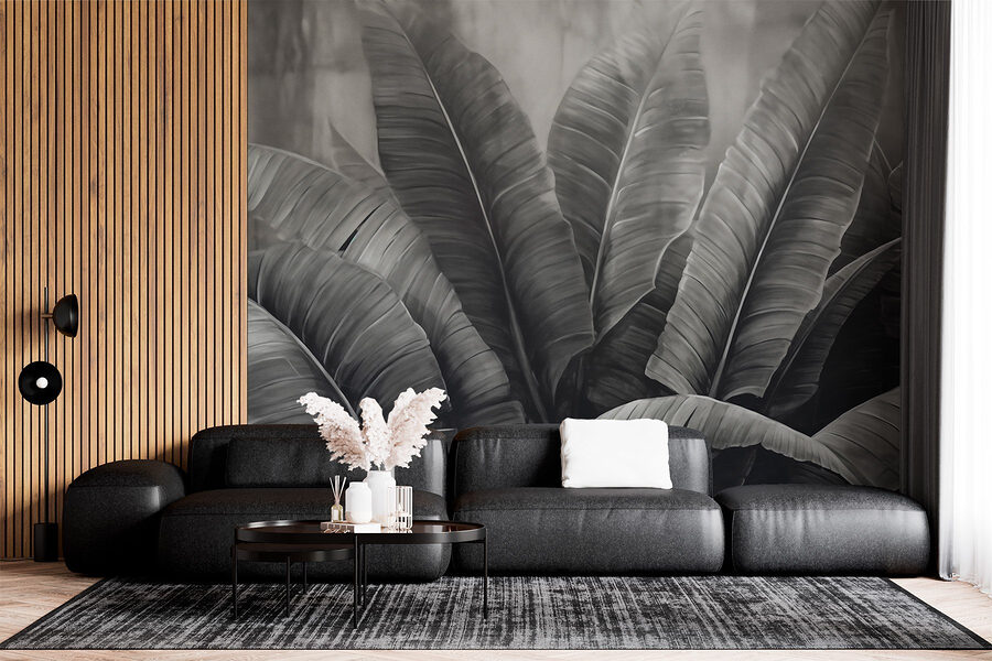 Transform a plain wall into a serene escape with the “Lush Foliage in Monochrome Tones” mural. Imagine walking into a room that feels like a tropical hideout, but without the humidity! The striking monochrome leaves just sweep you away, adding a soothing chill to your space. This mural whispers elegance, making it perfect for a cozy reading nook or a stylish office.
