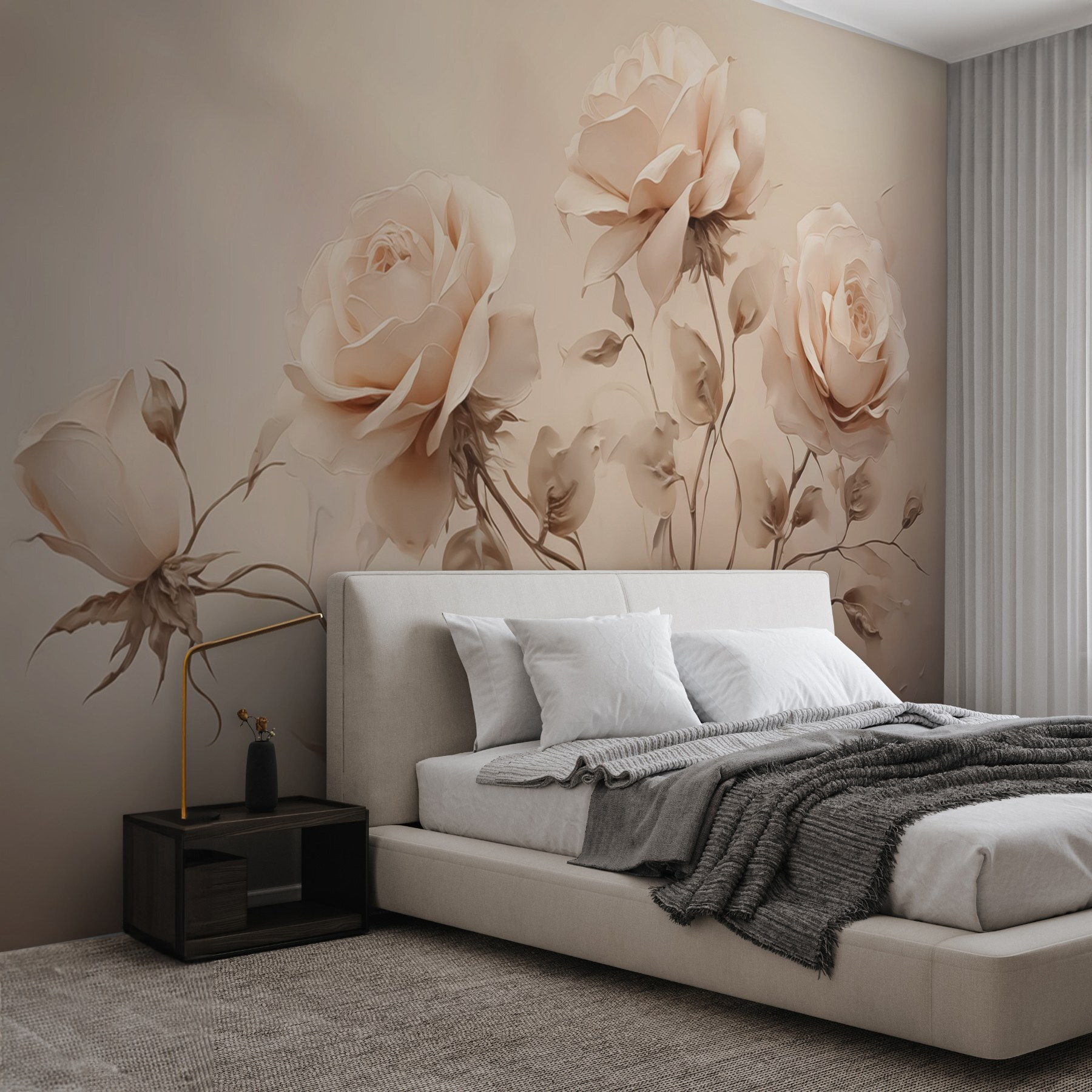 Transform your space with this stunning wall mural featuring a lovely group of roses and delicate leaves. It’s like bringing a bit of a garden right inside, perfect for adding a touch of romance or serenity to any room. Imagine sipping your morning coffee while soaking in the gentle beauty of these blooms, or turning a dull hallway into a floral escape. The soft colors and artistic design create a calming vibe that whispers ‘relaxation’—definitely a conversation starter. Who wouldn’t want to bask in the allure of these timeless flowers?