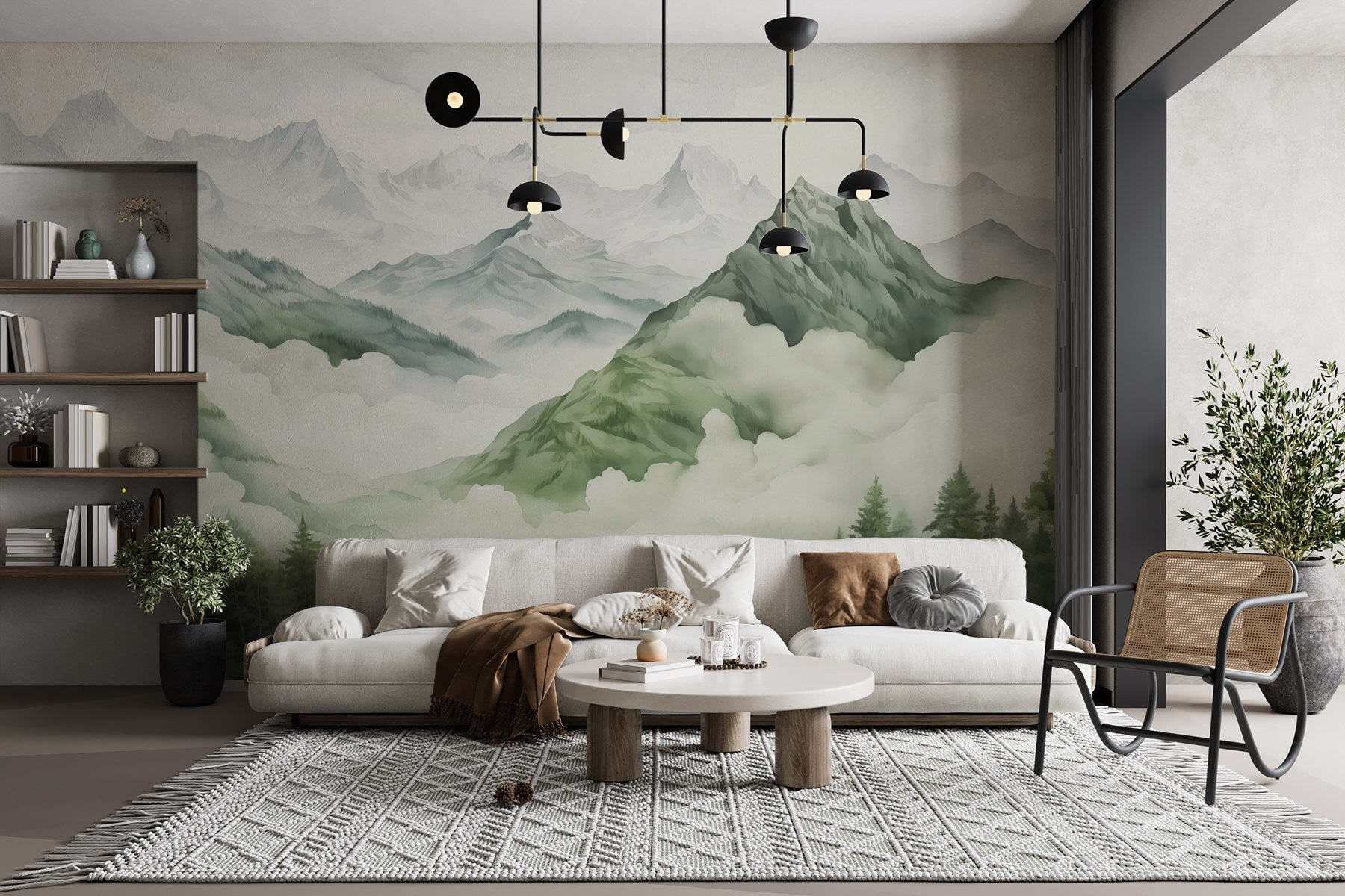 Transform your space with this stunning wall mural that captures the serene beauty of mountains and trees. Imagine stepping into a misty forest where pine-scented air wraps around you like a cozy blanket. It’s like a little getaway right at home, perfect for daydreaming or sipping coffee while gazing at the majestic peaks. The soft greens and subtle grays create a peaceful vibe, making any room feel instantly more inviting. Plus, it’s a great conversation starter—“Oh, this? Just my mountain retreat!” Bring nature indoors and let the adventures begin!