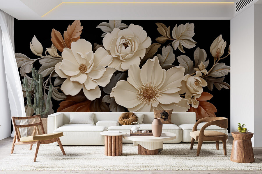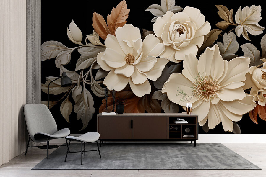 Transform your space into a botanical wonderland with this stunning mural of white flowers nestled among warm brown leaves. It’s like having a secret garden on your wall! Imagine waking up and being greeted by those soft petals—seriously, who needs coffee? The elegant palette makes it a cozy fit for any room, bringing a touch of nature indoors. Plus, it’s a great conversation starter. Friends will be like, “Wow, where’d you find that?” Just smile and say it’s your little secret. Perfect for stylish living rooms or dreamy bedrooms, this mural adds that special something that makes a house feel like home.