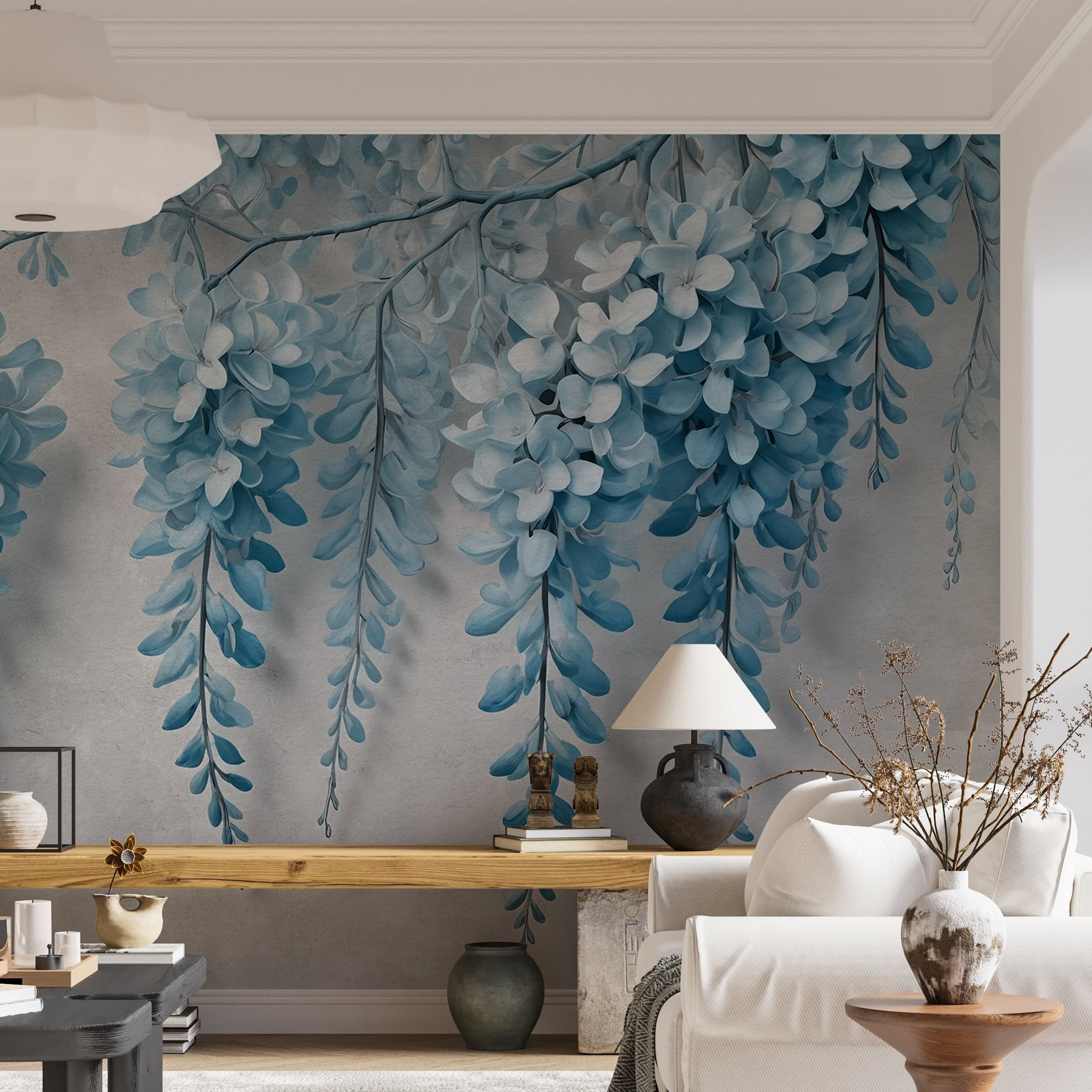 Transform any room with this stunning wall mural featuring branches adorned with delicate blue flowers. Imagine walking into your space and feeling like you’ve stepped into a dreamy garden, where every day is a little brighter. The serene hues create a calming vibe, perfect for a cozy reading nook or a lively living room. Friends will definitely notice this eye-catching piece—who wouldn’t gasp at those gorgeous blooms? It’s a beautiful reminder that nature can flourish inside, turning plain walls into a delightful escape. Just stare at it for a moment, and let the good vibes wash over.