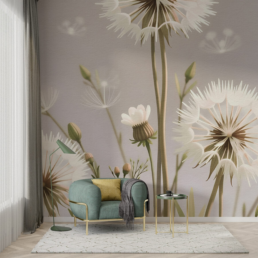 Transform your space with the “Delicate Blooms in Soft Palette” mural, where elegant dandelions sway gently like they’re dancing in a summer breeze. This mural invites calmness, perfect for a cozy reading nook or a serene bedroom retreat. Imagine sinking into your sofa, surrounded by soft hues and whispering petals, feeling like you’ve stepped into a tranquil garden. It’s like having nature right on your wall—without the bugs! Each delicate detail adds a touch of charm, making every glance a mini escape. Perfect for those who love floral beauty without the fuss.
