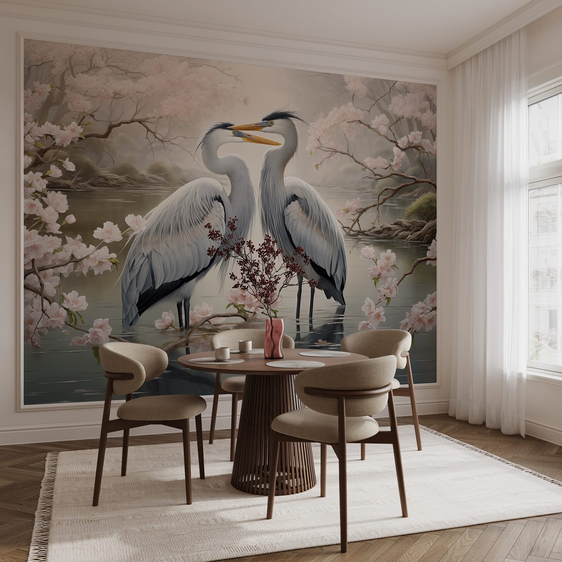 Transform your space into a serene escape with this beautiful wall mural featuring a couple of elegant white birds standing gracefully in tranquil waters surrounded by delicate pink flowers. It’s like a soft whisper of nature right in your living room! Imagine waking up to this dreamy scene, the gentle colors inviting calmness and a hint of romance. Perfect for a Japanese garden vibe, this mural blends art and nature, making every glance feel like a mini-vacation. It’s sure to spark smiles and conversations—who wouldn’t love a little slice of peace every day?