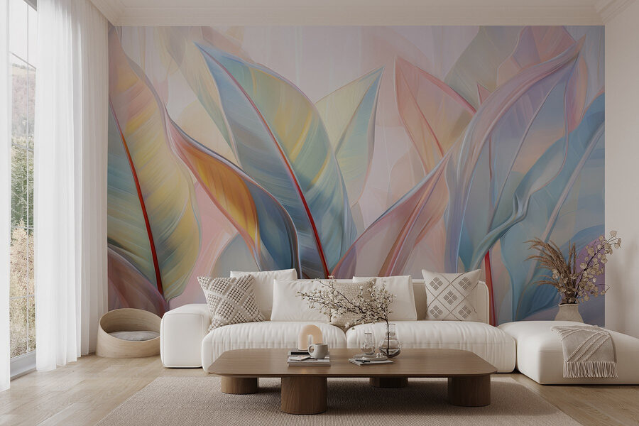 Transform any room into a serene escape with “Delicate Hues of Nature Intertwine.” This mural invites a gentle breeze right into your space. Imagine sipping coffee while surrounded by soft pastels and graceful leaves that seem to sway in the sunlight. It’s like a tropical getaway without the plane ticket! Each glance offers a little slice of nature’s beauty, perfect for those moments of daydreaming or escaping the chaos of everyday life. Plus, it’s a stylish way to bring the outdoors in—who needs a green thumb when you’ve got this? Perfect for a cozy reading nook or a vibrant communal space, this mural adds a touch of warmth and whimsy.