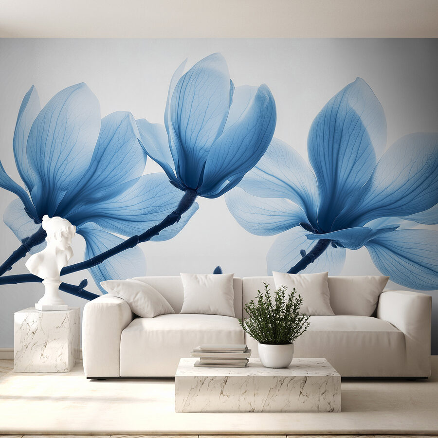 Transform any room into a cozy retreat with this stunning mural, “Delicate Petals in Soft Blue Hues.” Seriously, it’s like the flowers decided to throw a tea party on your wall. Imagine waking up to these gentle, watercolor blooms softly swaying in the breeze—without needing to water them! Perfect for a calming bedroom vibe or even a peaceful office space. Plus, it’s such a great conversation starter. Friends might think you’re running an art gallery! This marvelous mural invites a wave of tranquility, making any spot feel like a serene escape. Just don’t be surprised if you find yourself daydreaming a little too much.