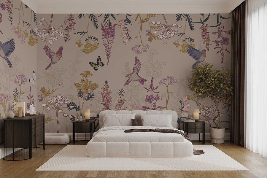 Transform any room into a serene escape with this enchanting “Wall Murals Wallpaper with Birds and Flowers.” Imagine stepping into a garden where vibrant blooms are just a glance away, and cheerful birds flit through the air. The soft, watercolor palette gives off a dreamy vibe, perfect for cozying up with a good book or sipping tea on a rainy afternoon. Each flower seems to whisper a secret, while the birds add a playful touch, as if they’re inviting you to join their cheerful chatter. You might even find yourself daydreaming of sunlit afternoons or the gentle rustle of a breeze—it’s like nature’s art right on your wall!