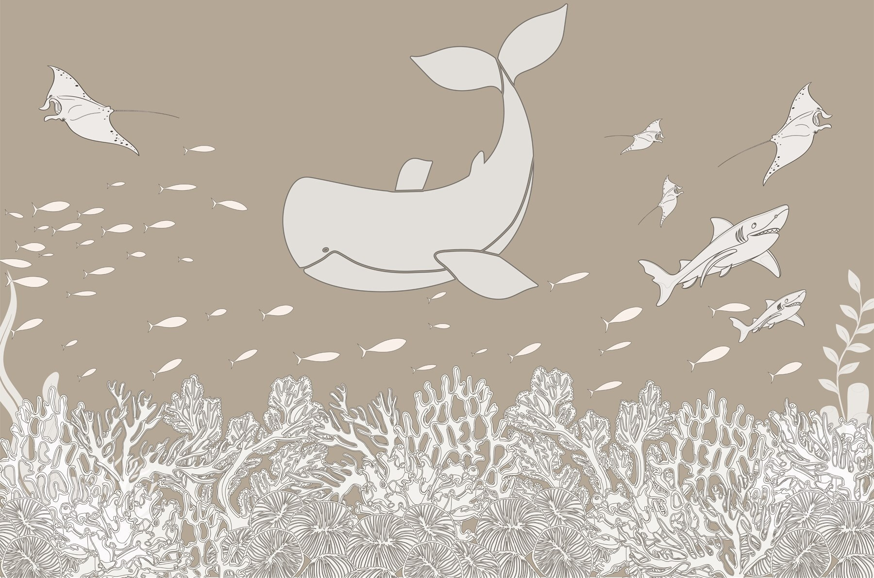 Dive into tranquility with this captivating wall mural, featuring a charming whale and a playful cast of underwater fish. Transforming your space into an aquatic wonderland, it effortlessly blends elegance with a touch of whimsy. Imagine sipping your morning coffee while feeling like you’re floating in the deep blue—perfect for those days when you need to escape the chaos! The subtle watercolor style adds a dreamy vibe, making any room feel more serene. It’s an invitation to explore, relax, and maybe even daydream about that next seaside getaway. Perfect for nurseries, living rooms, or anywhere that could use a little splash of joy!