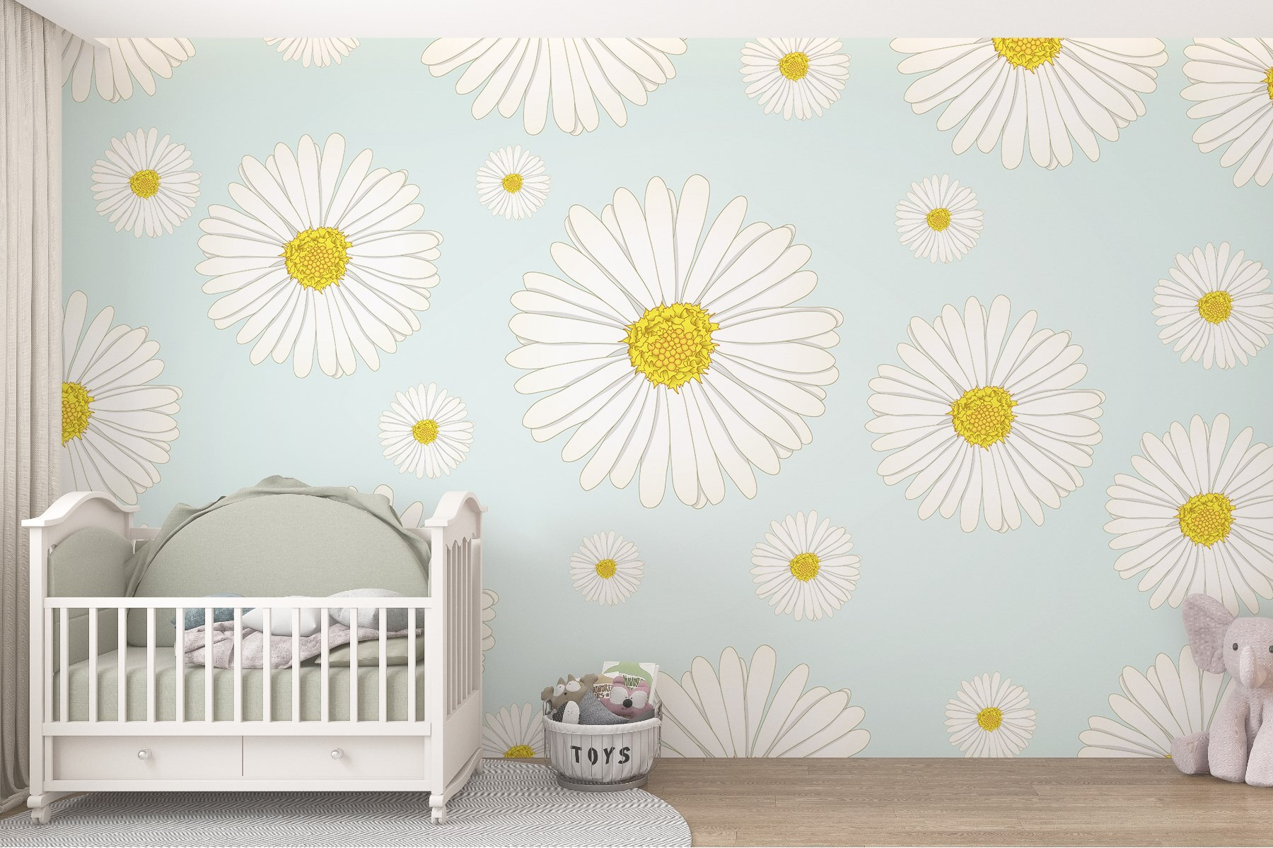 Brighten up any room with this delightful wall mural featuring a cheerful pattern of white and yellow flowers. It’s like inviting a garden right into your home, minus the watering can! Imagine walking into your space and feeling that instant lift, like the sun peeked through after a rainy day. This mural adds a splash of freshness, making it perfect for a cozy reading nook or a lively kitchen. It’s not just decor; it’s a mood booster. Let those blooms spread happiness all around, because who couldn’t use a little more floral joy in their life?