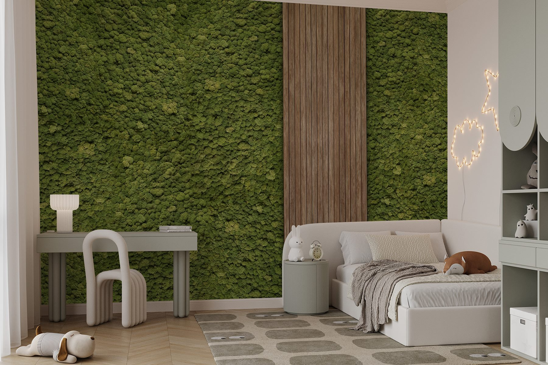 Transform any space with this stunning wall mural that’s a feast for the eyes! Picture a cozy room, where a rustic wood plank meets a plush green carpet. It’s like bringing the outdoors in—no mud or bugs involved! This design creates an instant vibe, pulling together nature’s charm and a warm, inviting feel. Imagine sipping your morning coffee surrounded by such a serene backdrop. Perfect for a living room or a home office, it’s sure to spark joy and those “oohs” and “aahs.” Plus, who doesn’t love a good green scene to shake off the daily grind? It’s decor magic with a dash of coziness!