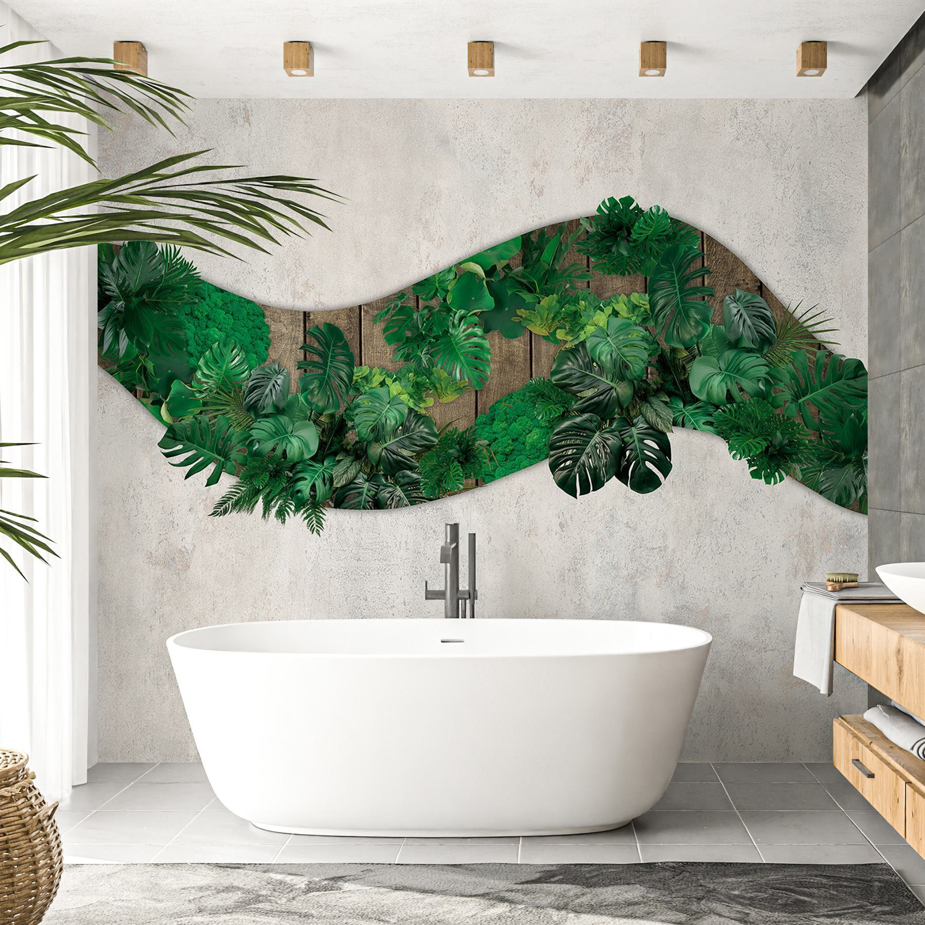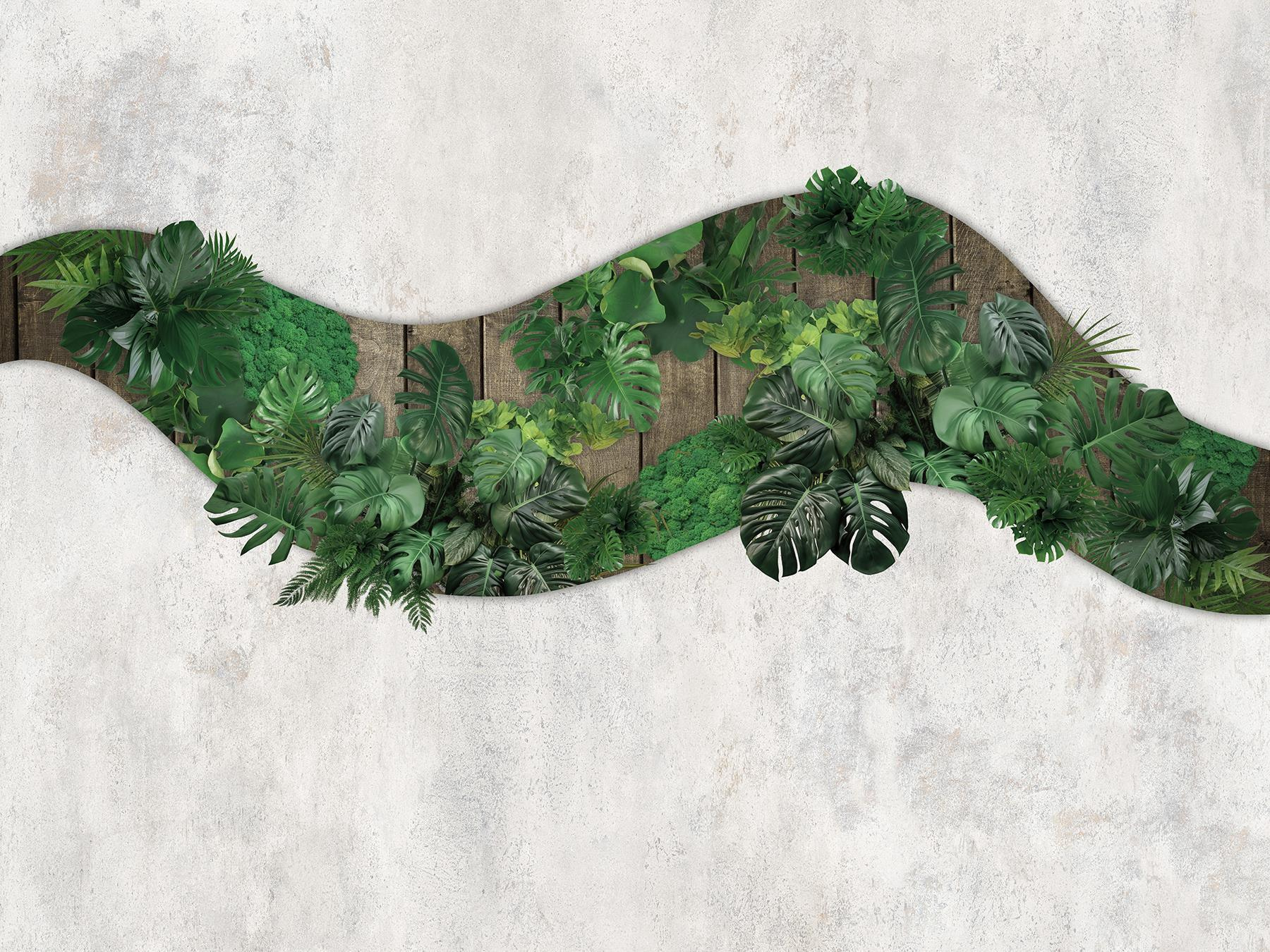 Imagine walking into a room that feels like a tropical oasis—without the humidity! This stunning wall mural, featuring vibrant green leaves against a rustic wooden backdrop, brings a breath of fresh air right into your home. It’s like nature decided to crash your living space! Perfect for anyone wanting to add a touch of the outdoors, it creates a serene vibe and a cozy atmosphere.
