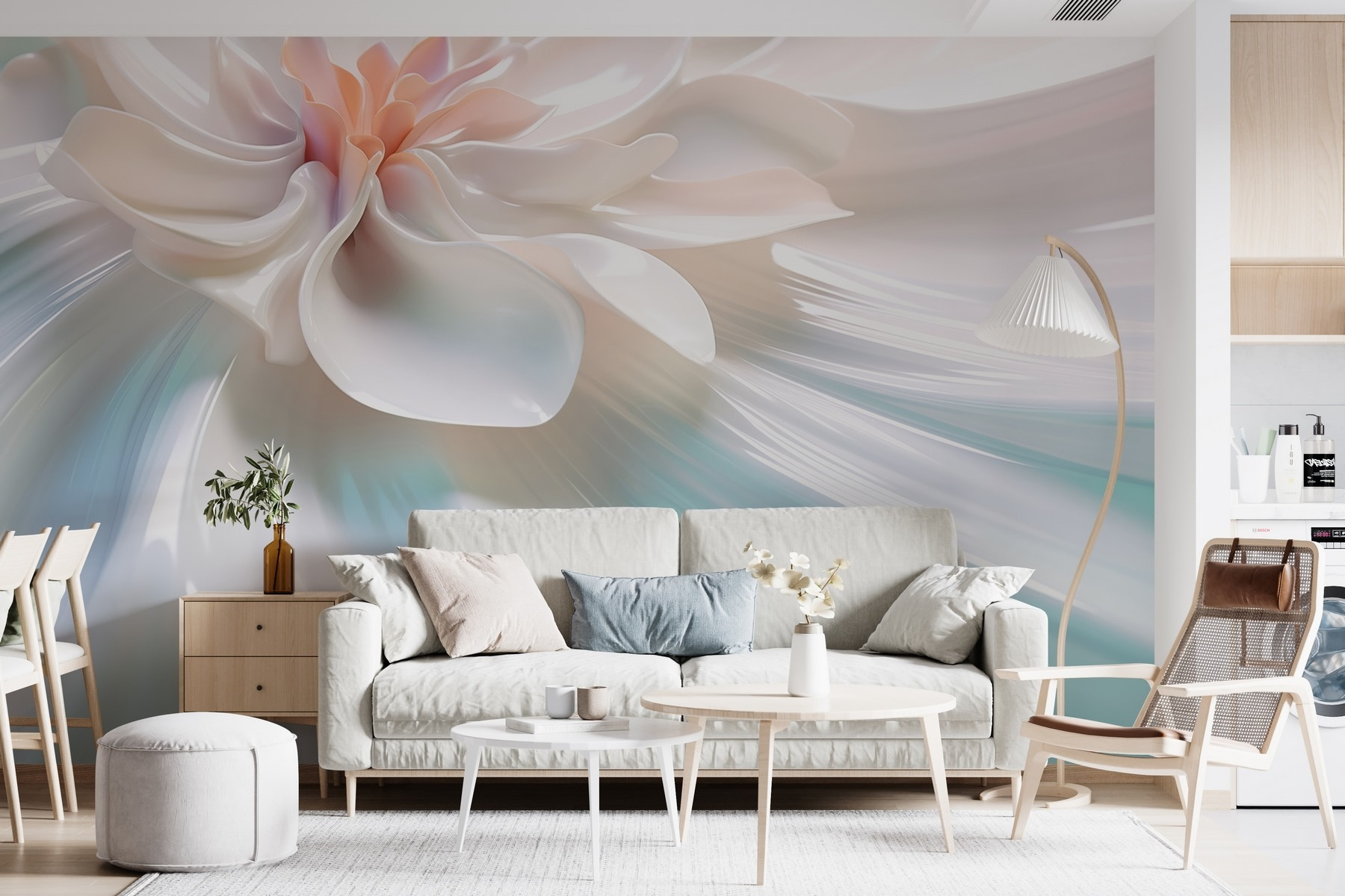 Transform any space with this stunning “Wall Murals White Flower on a White Surface.” Imagine walking into a room and being greeted by a graceful bloom that seems to breathe life into the walls. The soft, flowing petals in delicate hues create a serene atmosphere, perfect for unwinding after a long day or inspiring creativity. It’s like an art gallery, but you’ve got front-row seats right in your own home.