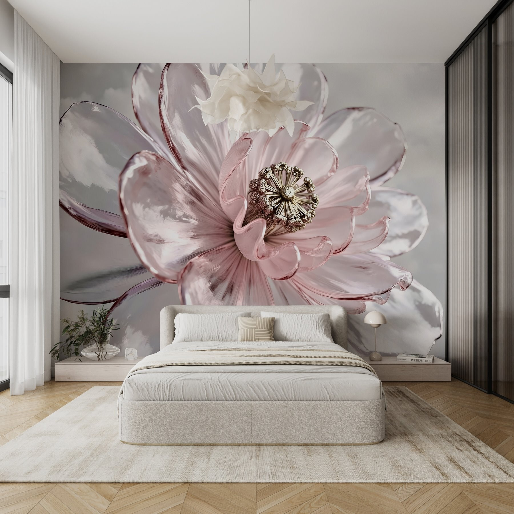 Transform any space with this stunning mural, “Delicate petals embrace intricate beauty.” Imagine walking into a room greeted by the gentle blush of peonies and roses, petals so lifelike they might just sway in a breeze. This mural effortlessly melds elegance with a touch of nature, creating a soothing atmosphere for relaxation or inspiration. It’s like a garden party for the walls, sparking joy and compliments from anyone who visits. Plus, no watering required—just pure visual delight! Perfect for those moments when you need a little floral love and some sophisticated magic sprinkled into your everyday life.