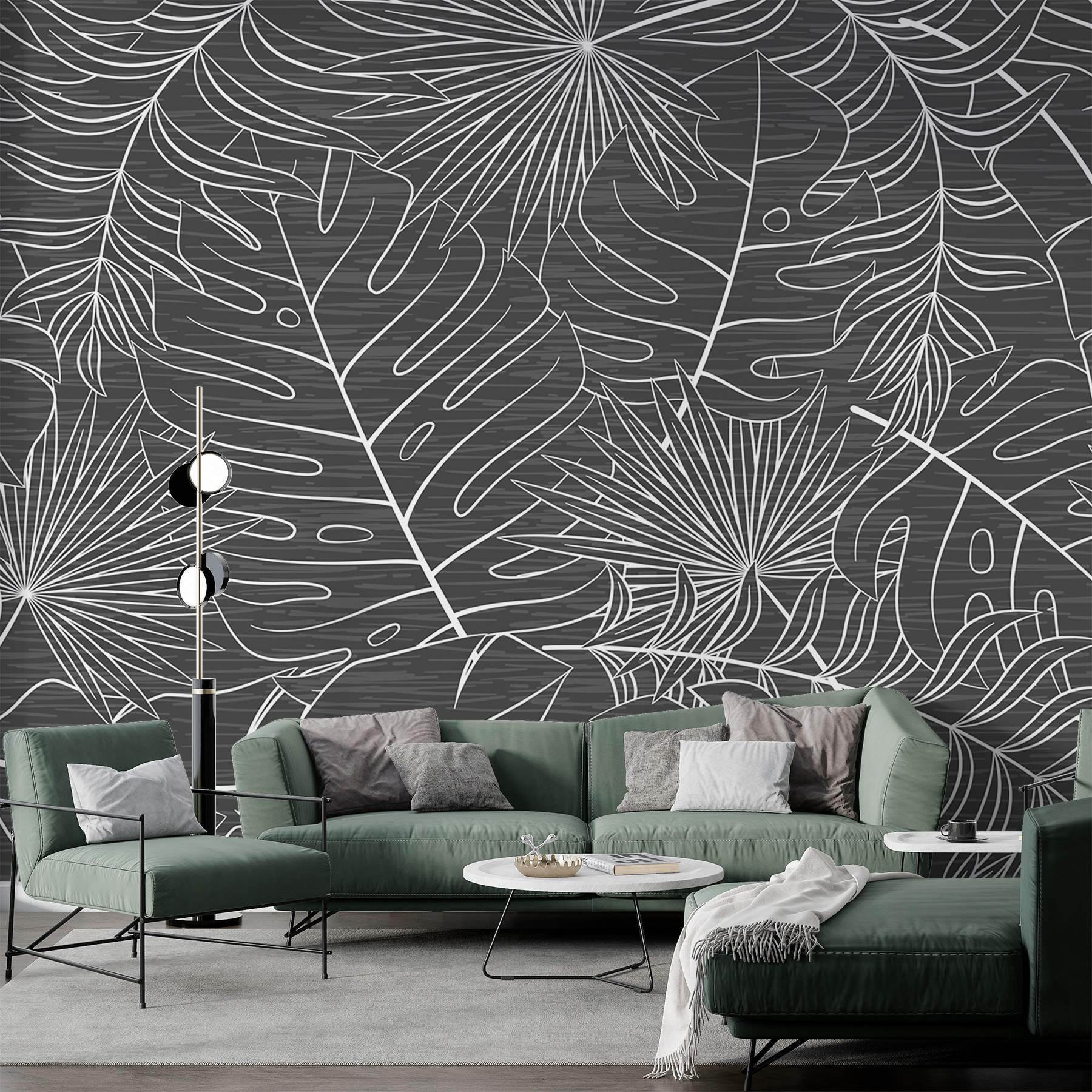 Transform any room into a tropical oasis with this stunning wall mural featuring a captivating pattern of leaves on a sleek grey backdrop. Think of it as bringing a slice of nature indoors—without the watering can. The elegant white outlines dance playfully against the muted tones, adding just the right touch of sophistication and warmth. Imagine lounging in your cozy corner, this mural whispering stories of sun-soaked beaches and balmy nights. Perfect for any space that craves a hint of the wild and a whole lot of style. Get ready to channel those relaxed tropical vibes—all in your living room!