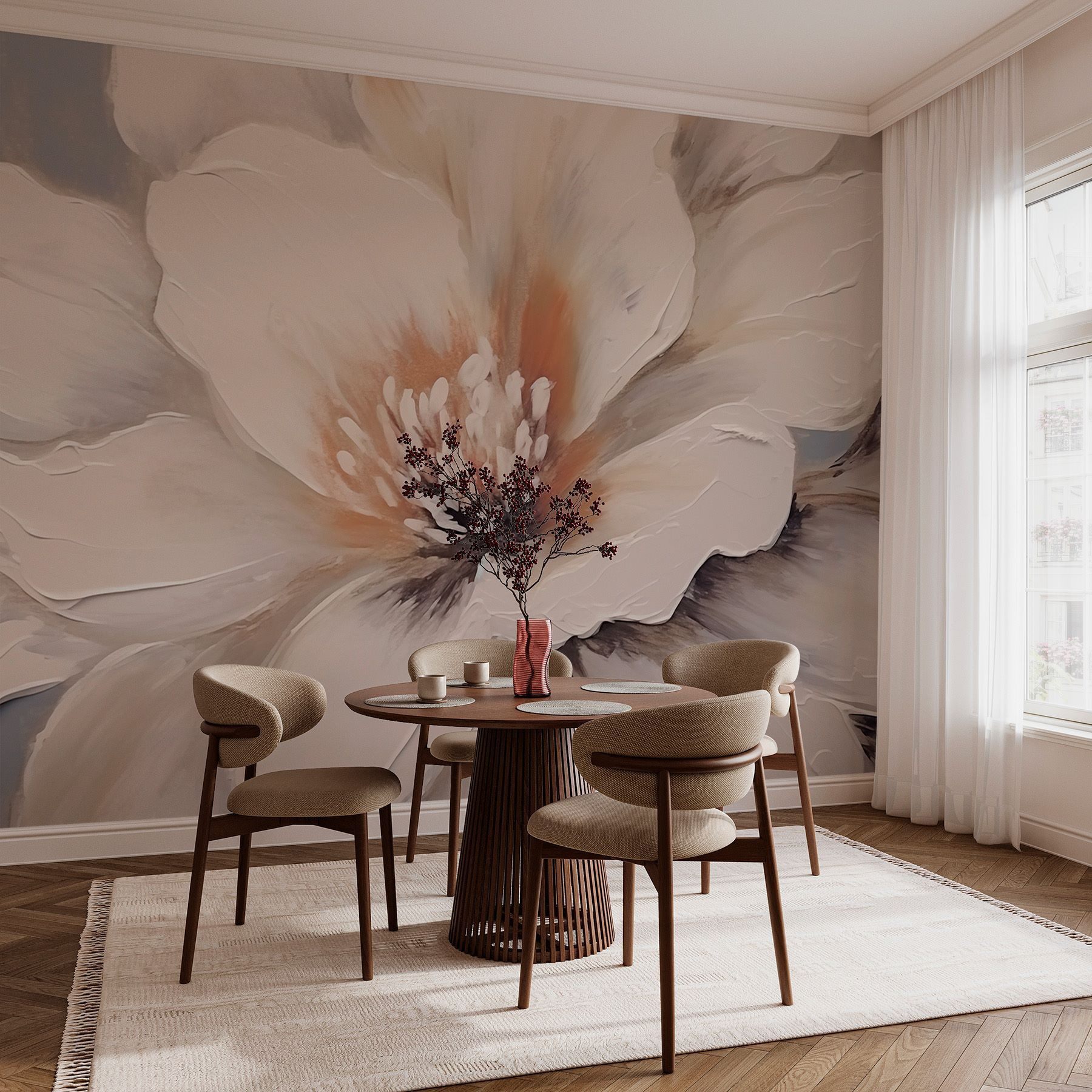 Transform your space with the “Delicate Petals in Soft Hues” mural, where subtle beauty meets nature’s grace. Just imagine walking into a room and being softly greeted by oversized peonies, their gentle colors wrapping you in warmth. It’s like having a garden indoors, minus the allergies! This mural whispers elegance, creating a serene backdrop for cozy evenings or lively brunches. Friends might even pause mid-conversation, captivated by the floral charm. Perfect for those sunlit corners or blank walls yearning for personality—bring a touch of nature home. Seriously, who wouldn’t want that?