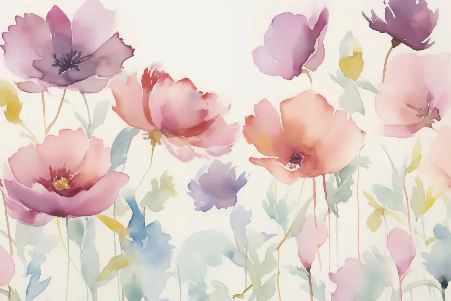 Transform any space with this stunning watercolor mural featuring a delightful bouquet of flowers. Imagine stepping into a room adorned with soft, pastel blossoms that seem to dance in gentle breezes. It’s like having a garden at home, minus the pesky pollen! The delicate hues blend beautifully, creating a calming backdrop that quietly whispers sophistication and cheer. Perfect for brightening up a cozy nook or making a bold statement in a living room. Friends might just ask if you’ve got a secret green thumb. Who knew flowers could spark such joy? Add a splash of color and let your walls bloom!