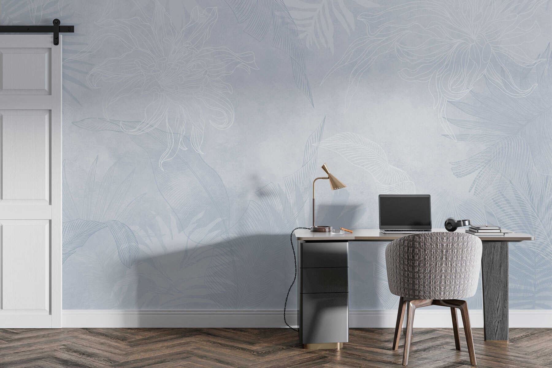 Transform your space into a serene oasis with this stunning white and blue floral wall mural. Imagine waking up to soft, tropical vibes every day. The delicate floral patterns and gentle color palette create a calming atmosphere, perfect for unwinding after a long day or energizing your morning routine. Picture a cozy nook set up with a comfy chair, maybe a cup of tea in hand—this mural would be the perfect backdrop. It’s like bringing a piece of paradise into your home, minus the sandy floors. Floral, fresh, and oh-so-inviting, it’s just waiting to give your walls a breath of fresh air!