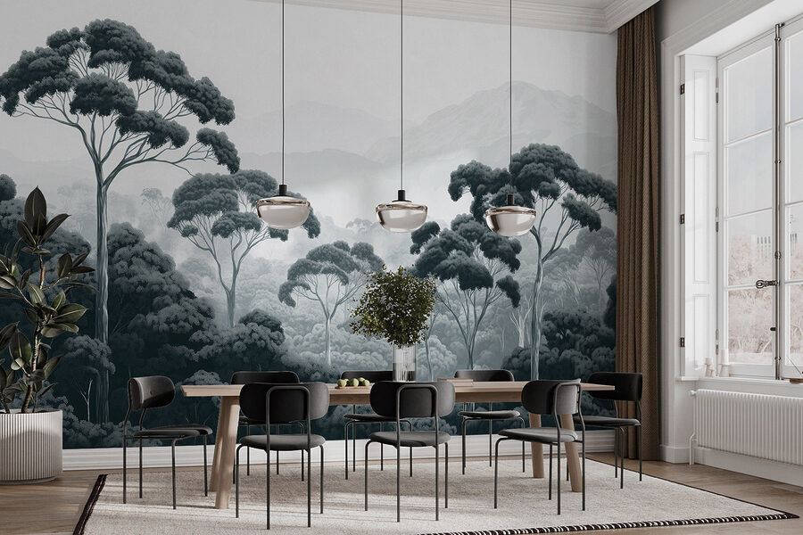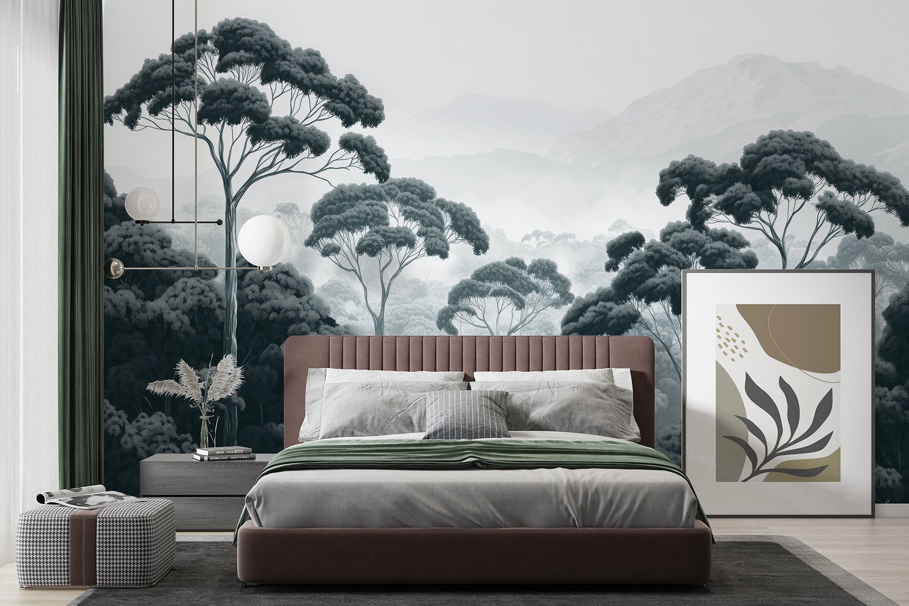 Transform any room into a serene escape with this stunning wall mural of a forest, where grand trees tower over a misty mountain backdrop. It’s like bringing a slice of nature indoors, minus the bugs—thank goodness! Imagine waking up to this calming view, coffee in hand, while the world outside can keep its hustle. This mural’s soft, muted tones create such a peaceful vibe that even the busiest of schedules will feel a little less frantic. Perfect for a cozy reading nook or to spruce up that one wall that’s been feeling a bit lonely. Get ready to breathe in that fresh forest air—well, kind of! It’s all about the feel-good atmosphere, right?
