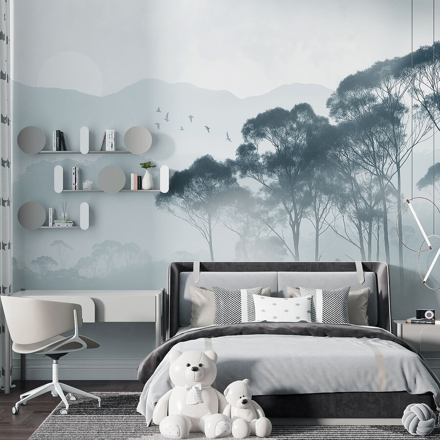 Transform your space into a serene retreat with this wall mural of trees shrouded in soft fog. The way those gentle silhouettes dance in the mist brings a sense of calm, like a gentle whisper urging you to take a deep breath. Imagine cozying up with a cup of tea, the world outside feeling miles away, as you find your thoughts drifting with the clouds. It’s perfect for a reading nook or an office—anywhere needing a touch of nature’s tranquility. Don’t be surprised if it sparks daydreams of quiet hikes through the woods or peaceful mornings watching the sunrise. This mural isn’t just decor; it’s an invitation to escape, even if just within your own walls.
