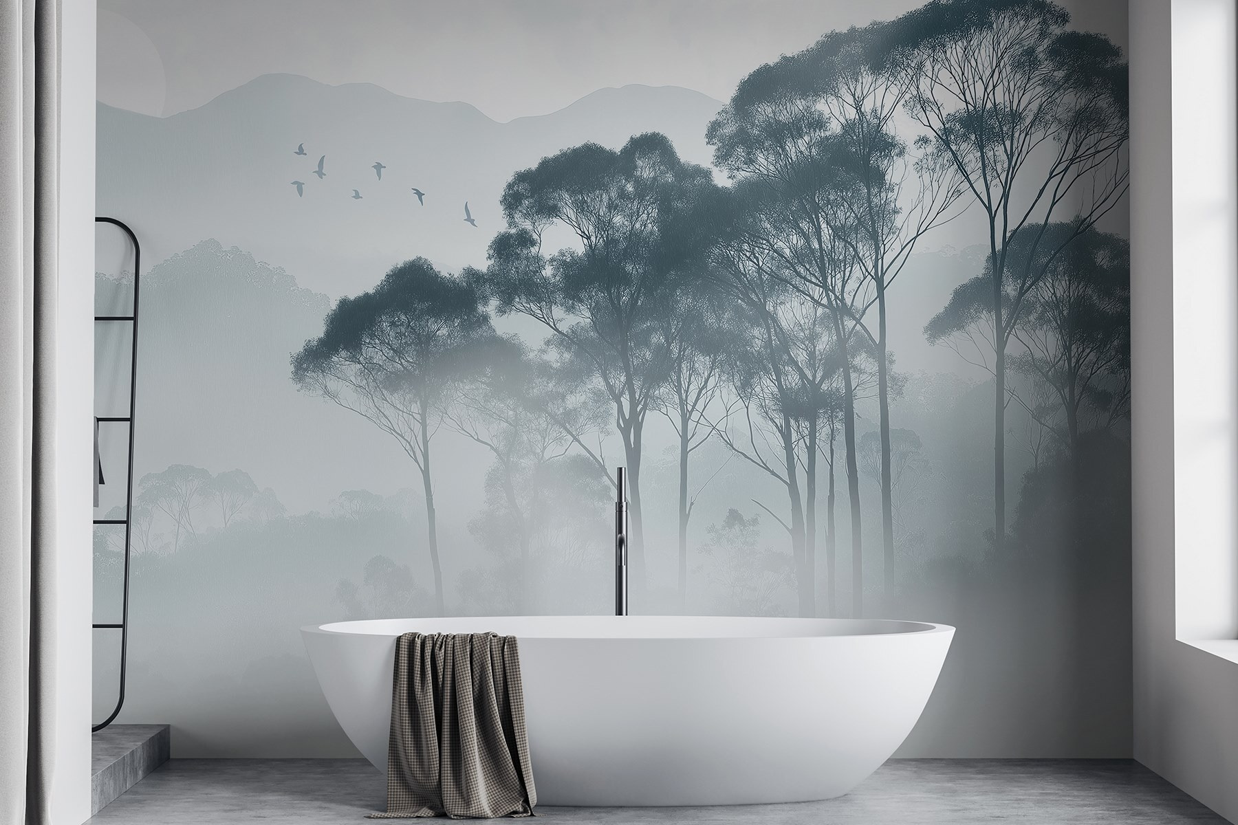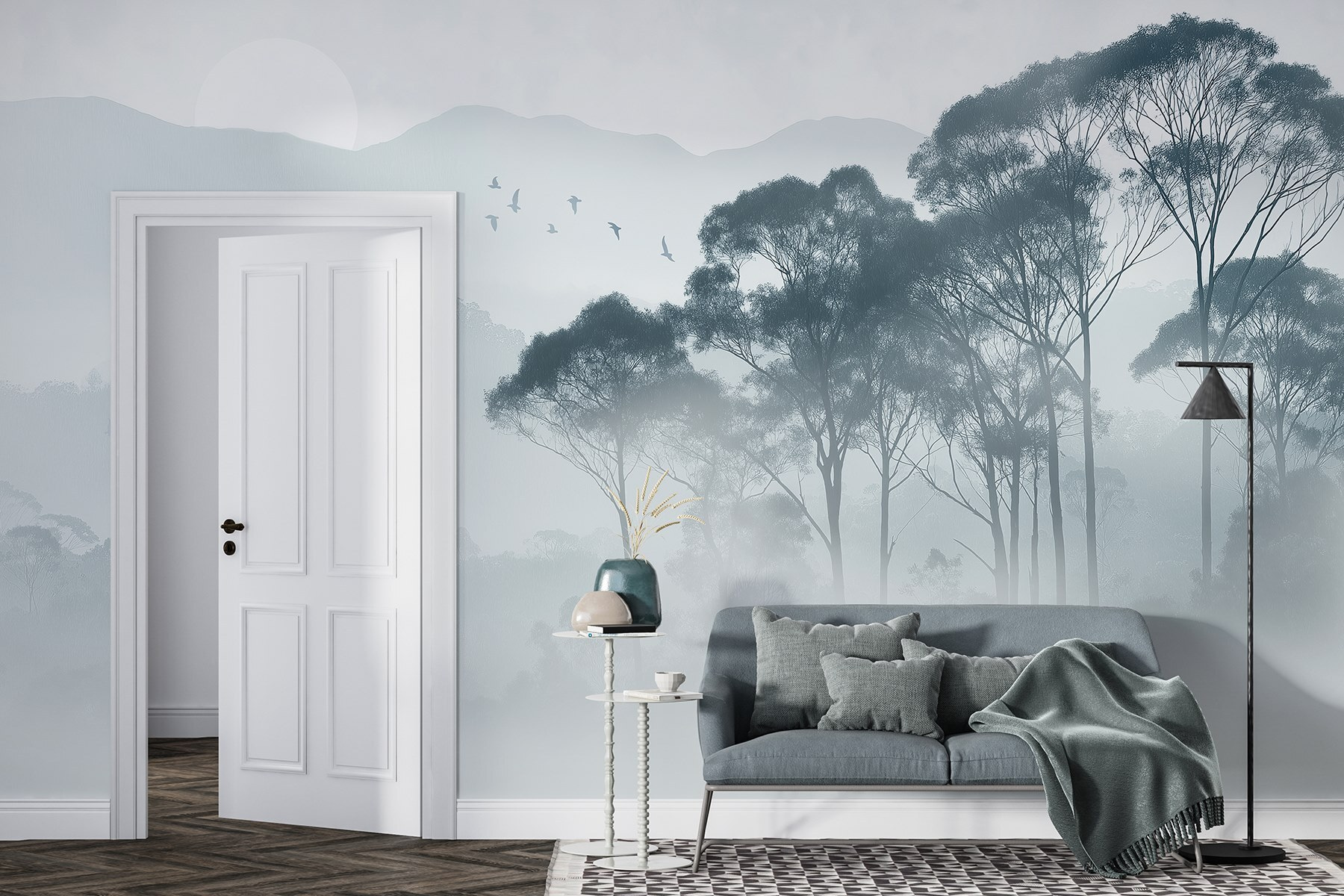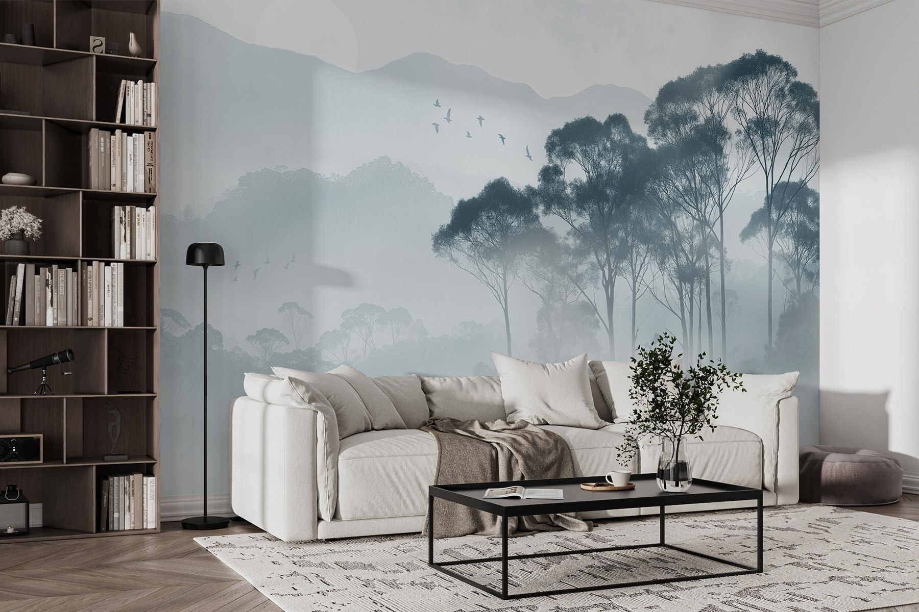 Transform your space into a serene retreat with this wall mural of trees shrouded in soft fog. The way those gentle silhouettes dance in the mist brings a sense of calm, like a gentle whisper urging you to take a deep breath. Imagine cozying up with a cup of tea, the world outside feeling miles away, as you find your thoughts drifting with the clouds. It’s perfect for a reading nook or an office—anywhere needing a touch of nature’s tranquility. Don’t be surprised if it sparks daydreams of quiet hikes through the woods or peaceful mornings watching the sunrise. This mural isn’t just decor; it’s an invitation to escape, even if just within your own walls.