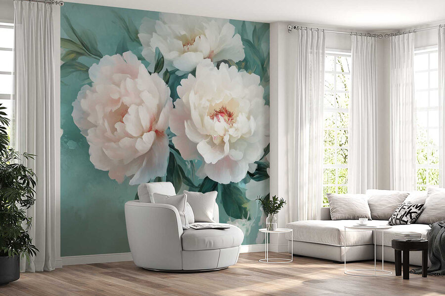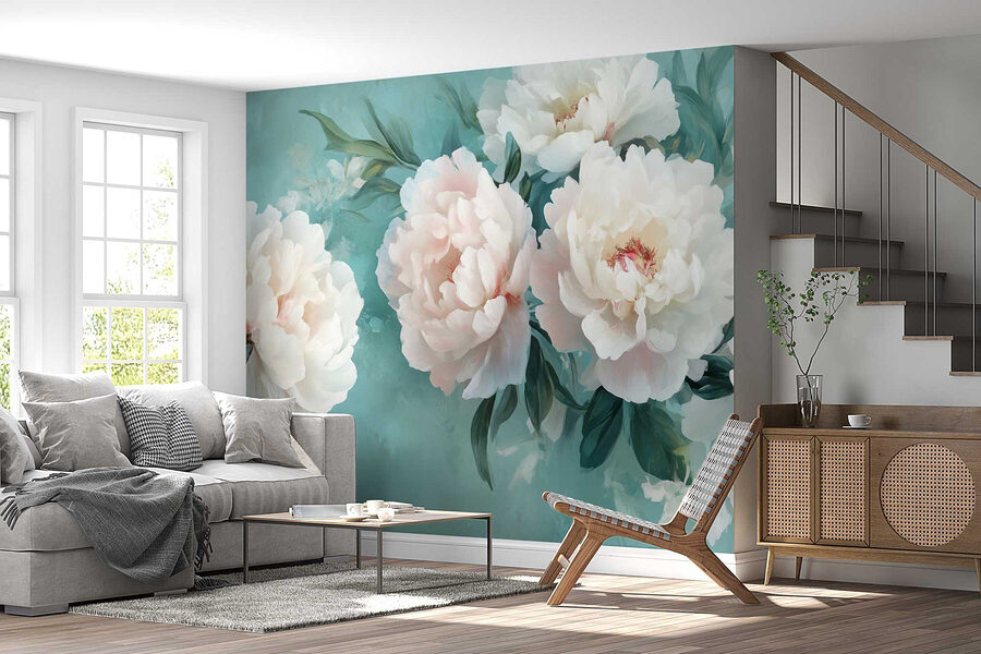 Transform any room into a serene escape with the “Group of White Flowers” wall mural. Picture fluffy peonies in soft pastels, blooming like they’ve just caught the light. It’s like bringing an entire garden indoors, without the pesky pollen! Imagine sipping your morning coffee while feeling like you’re in a dreamy, botanical paradise. The gentle turquoise backdrop adds a splash of tranquility to your space, making it perfect for cozy mornings or late-night reading. Plus, if guests visit, they might just mistake your wall for a swanky art gallery. Who knew that a few flowers could spark so much joy?