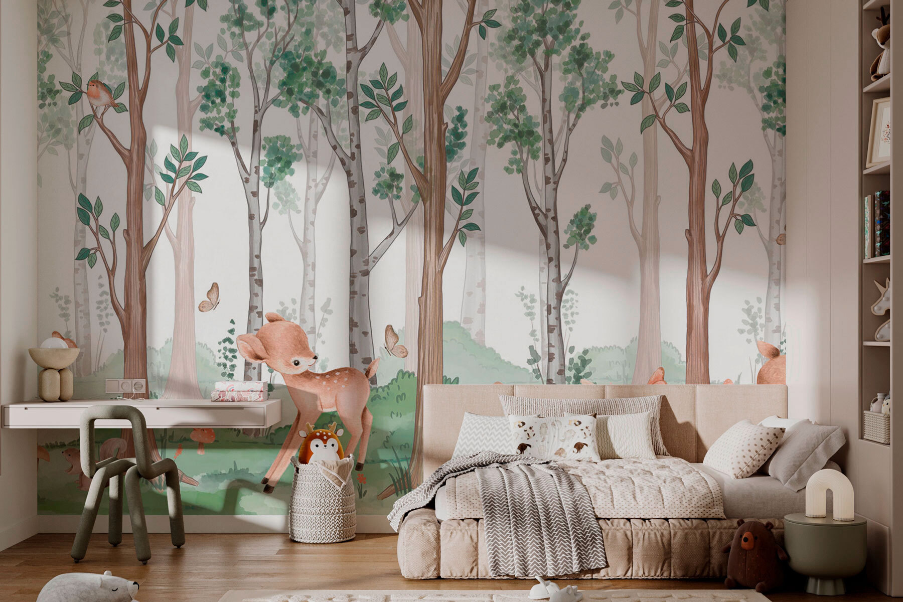 Transform a boring wall into a whimsical woodland escape with this delightful wall mural. Imagine a forest filled with gentle deer, curious bunnies, and fluttering butterflies—it’s like a secret garden right in your living room. This mural invites you to step into nature without the pesky bugs or muddy shoes. It’s perfect for a cozy reading nook or a playful kid’s room. Plus, who doesn’t love a good squirrel sighting? Fresh greens and soft browns create a calming vibe that’s easy on the eyes. Suddenly, every day feels like a little adventure!