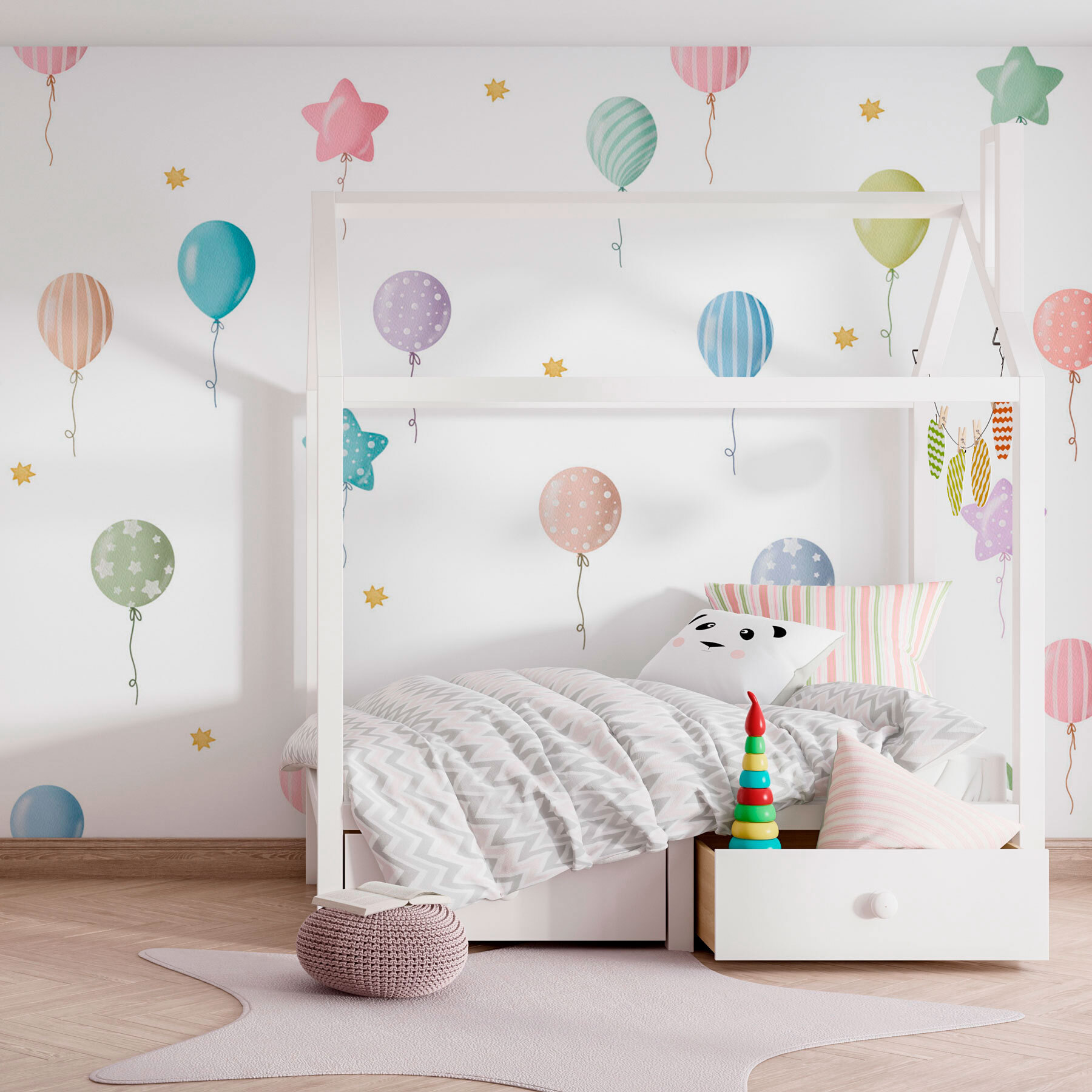 Add a sprinkle of joy to any kiddo’s space with this delightful mural of balloons and stars! Picture soft pastels and playful shapes dancing across your wall, giving off a vibe that screams celebration. It’s like a party without the messy cake and confetti everywhere! Imagine a little one’s face lighting up, dreaming of adventures on fluffy clouds. This mural can transform a plain room into a magical retreat where imaginations can soar. It’s perfect for nurseries or playrooms, creating a cozy corner that feels just right for storytime or exploring new worlds. With every glance, it’s bound to bring a smile—who doesn’t love balloons, right?